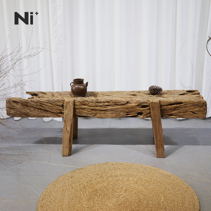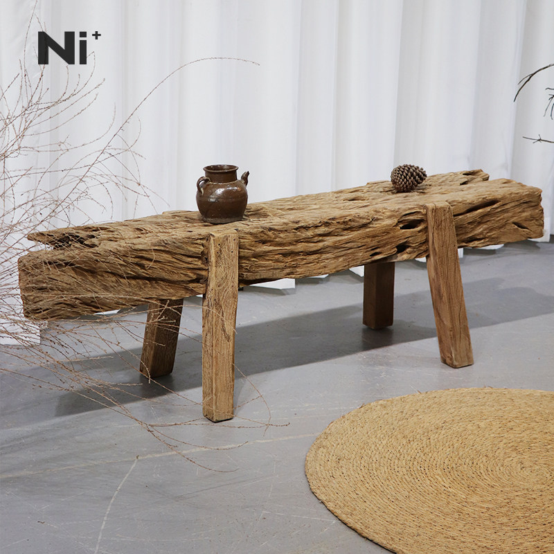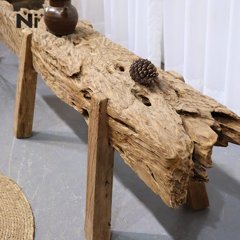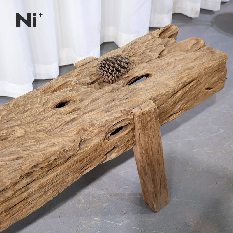 Ni尼家侘寂风实木长凳原木不规则靠墙换鞋凳服装店民宿茶空间凳子