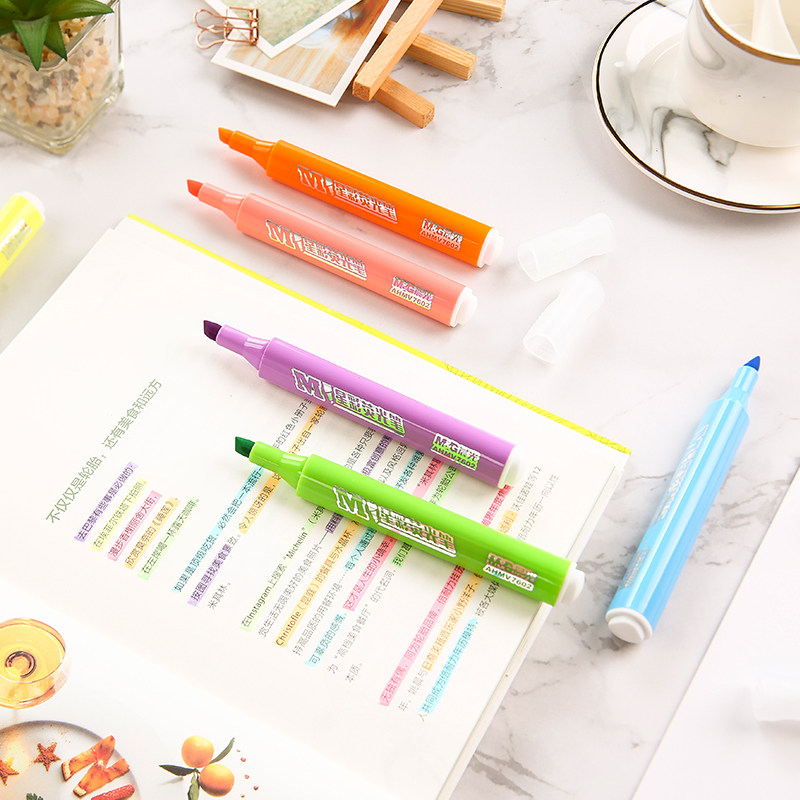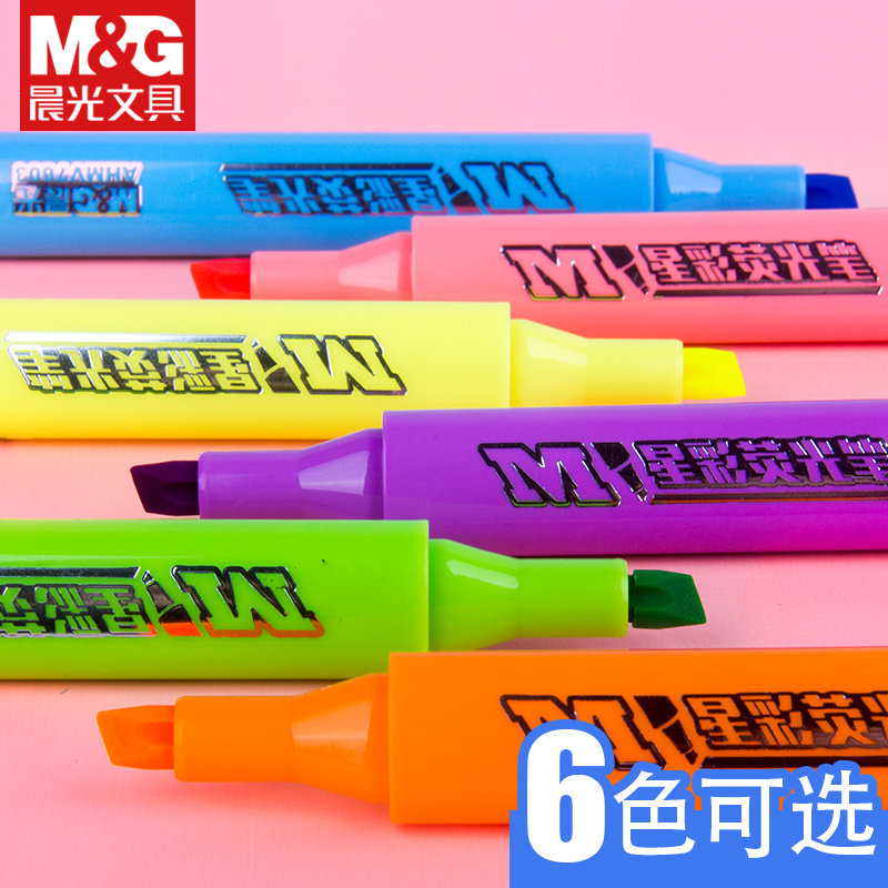 晨光星彩荧光笔标记笔6色粗线条学生粗划重点考试点标记多色糖果色背书考研神笔小学中学学生文具