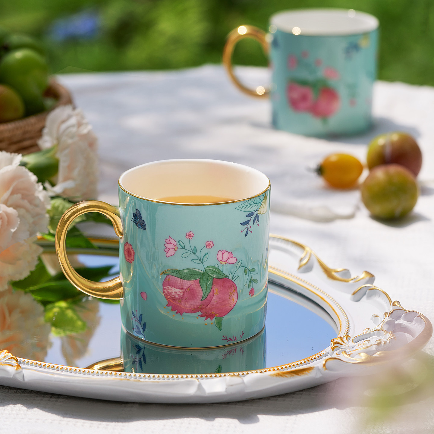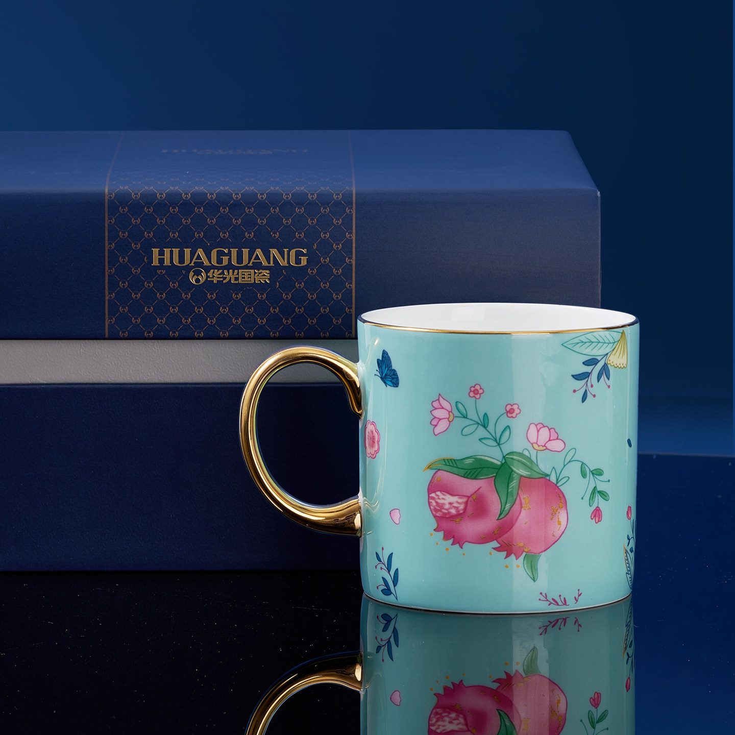 华光国瓷高档轻奢骨瓷马克杯水杯茶杯260ml生日送礼礼物 珐琅石榴