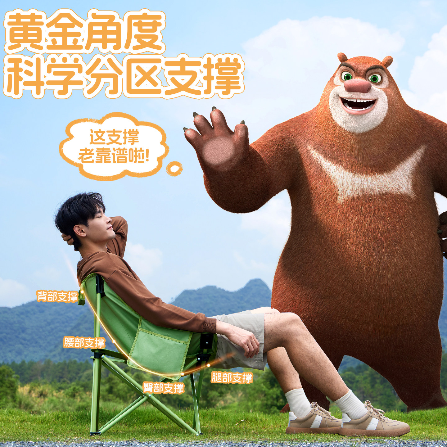 骆驼熊出没联名户外家用月亮椅露营折叠椅子便携板凳沙滩椅钓鱼