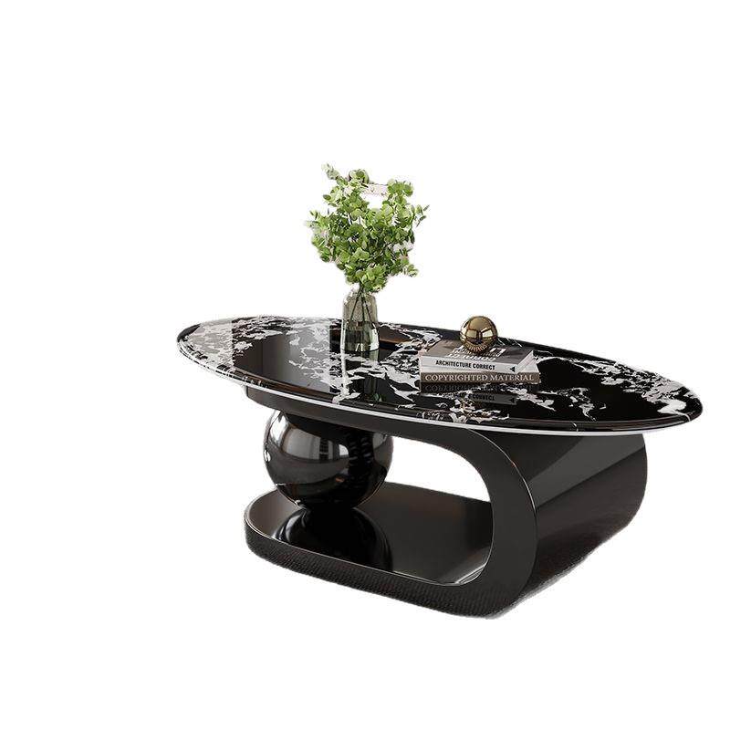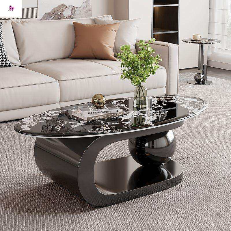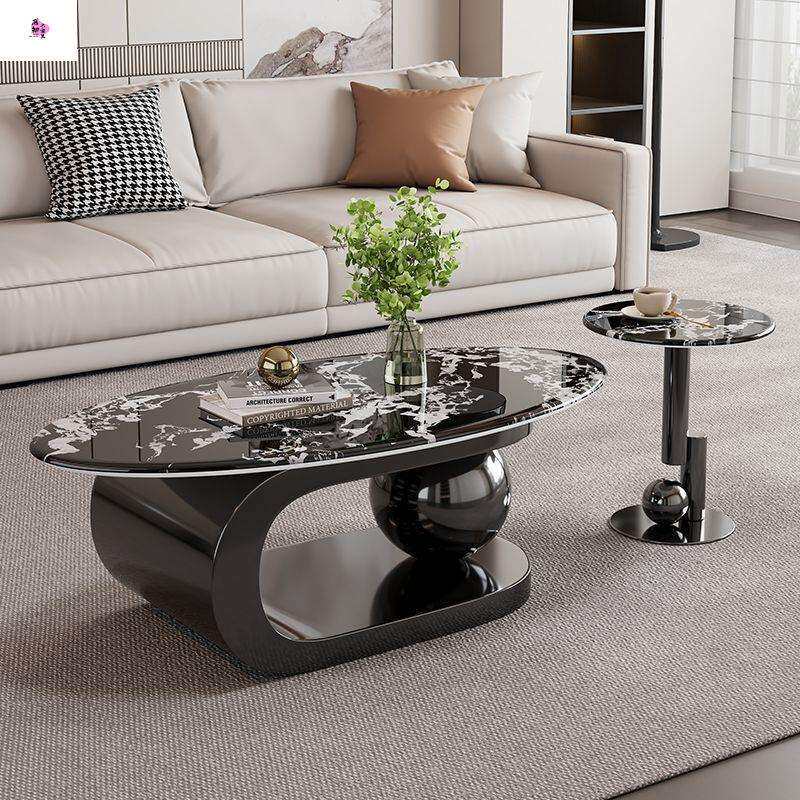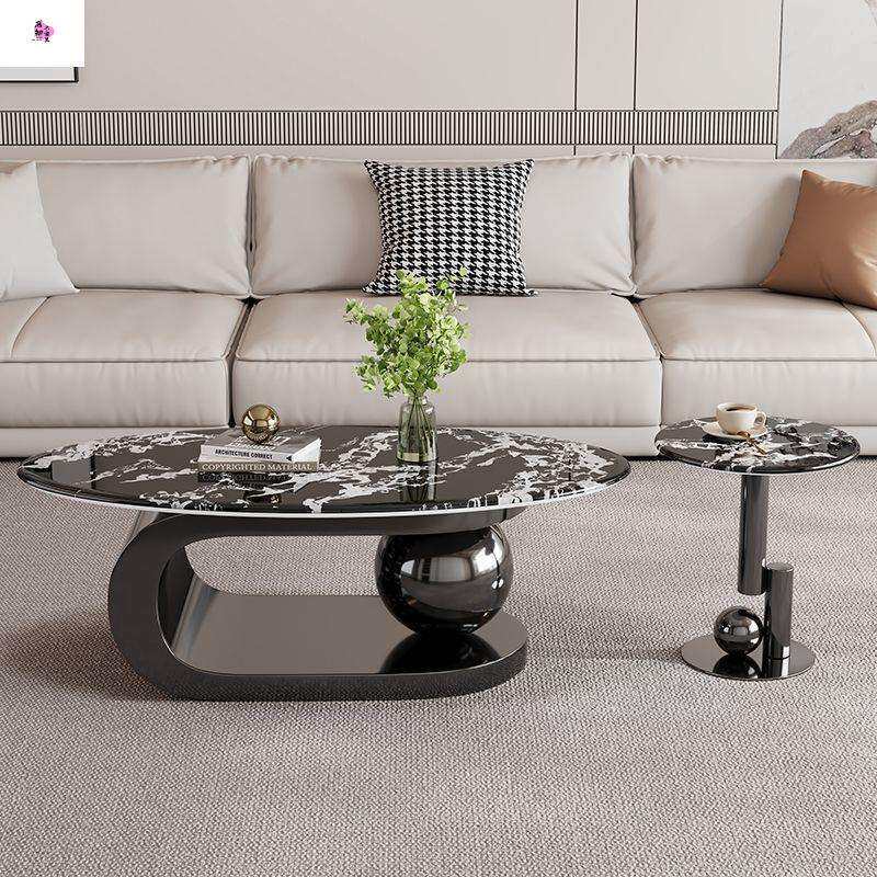 意式新款微晶石轻奢高级茶几简约现代椭圆形客厅小户型家用组合