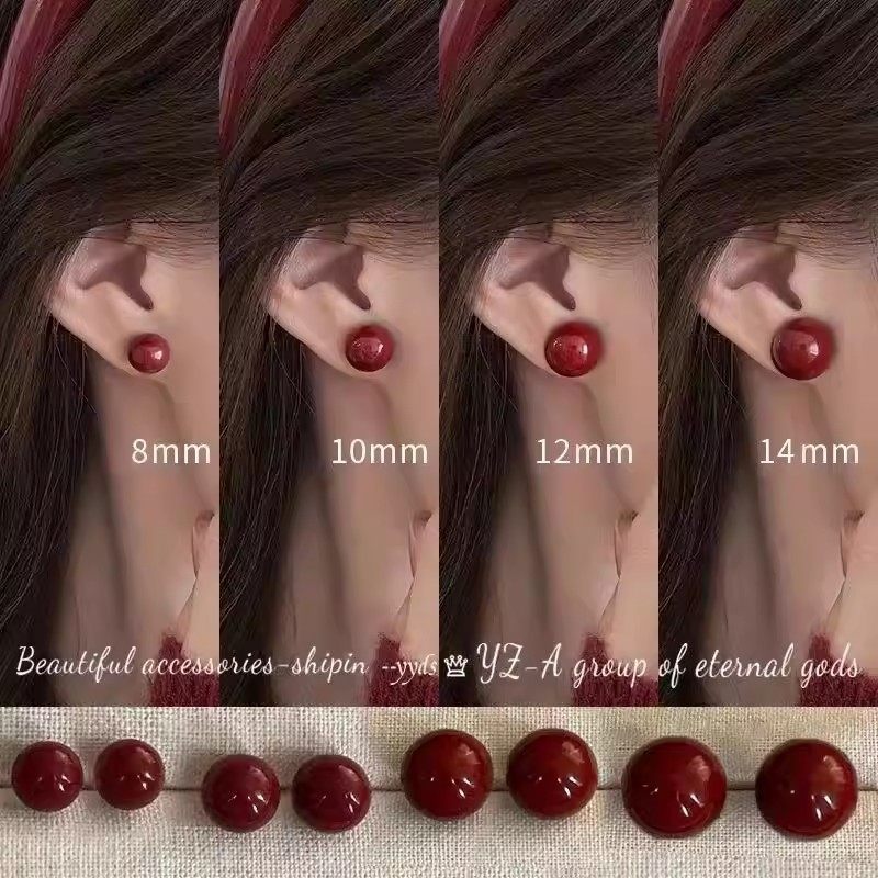 安可拉红豆豆珍珠耳钉女港风气质高级感耳环轻奢养耳洞耳饰馒头
