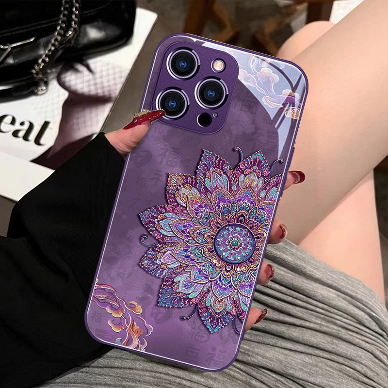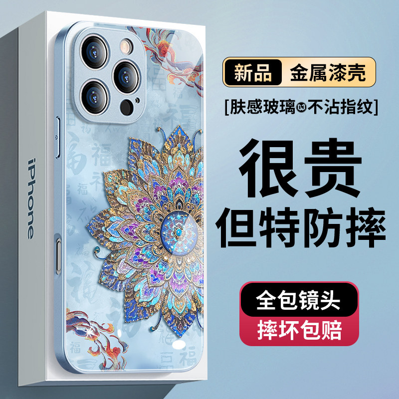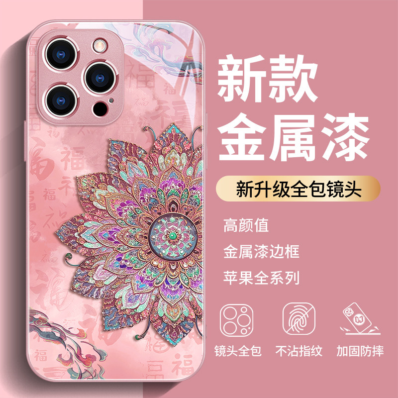 敦煌风花朵苹果17promax手机壳防摔iPhone16复古15pro民族风14promax高端ip13金属漆plus保护套12p超薄耐脏11