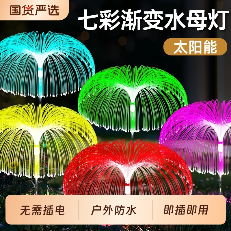 光纤水母地插灯太阳能庭院灯户外花园别墅草坪蘑菇灯节日氛围装饰