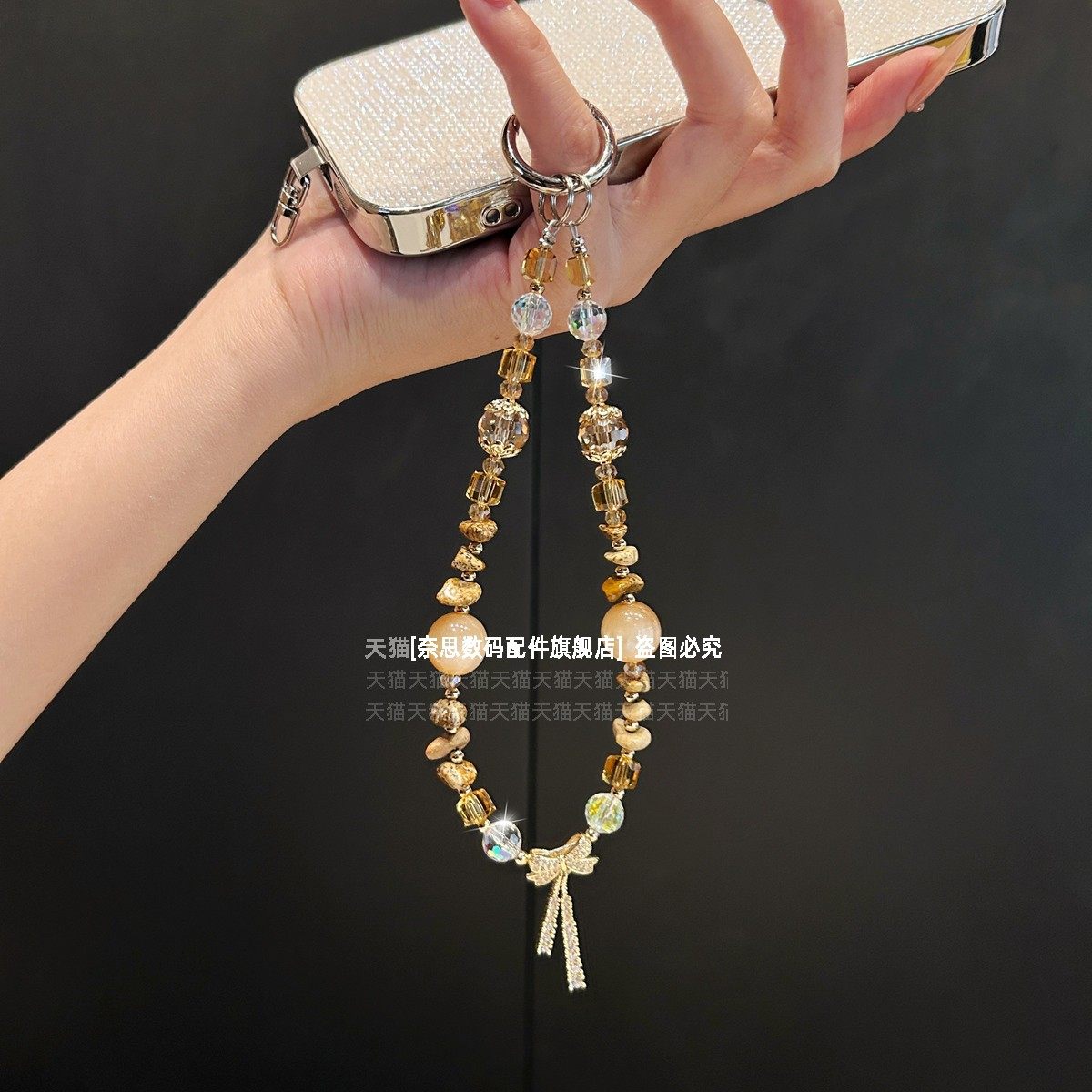 奢华高级感水晶手提链条手腕短挂绳带夹片壳钥匙扣包包挂件潮
