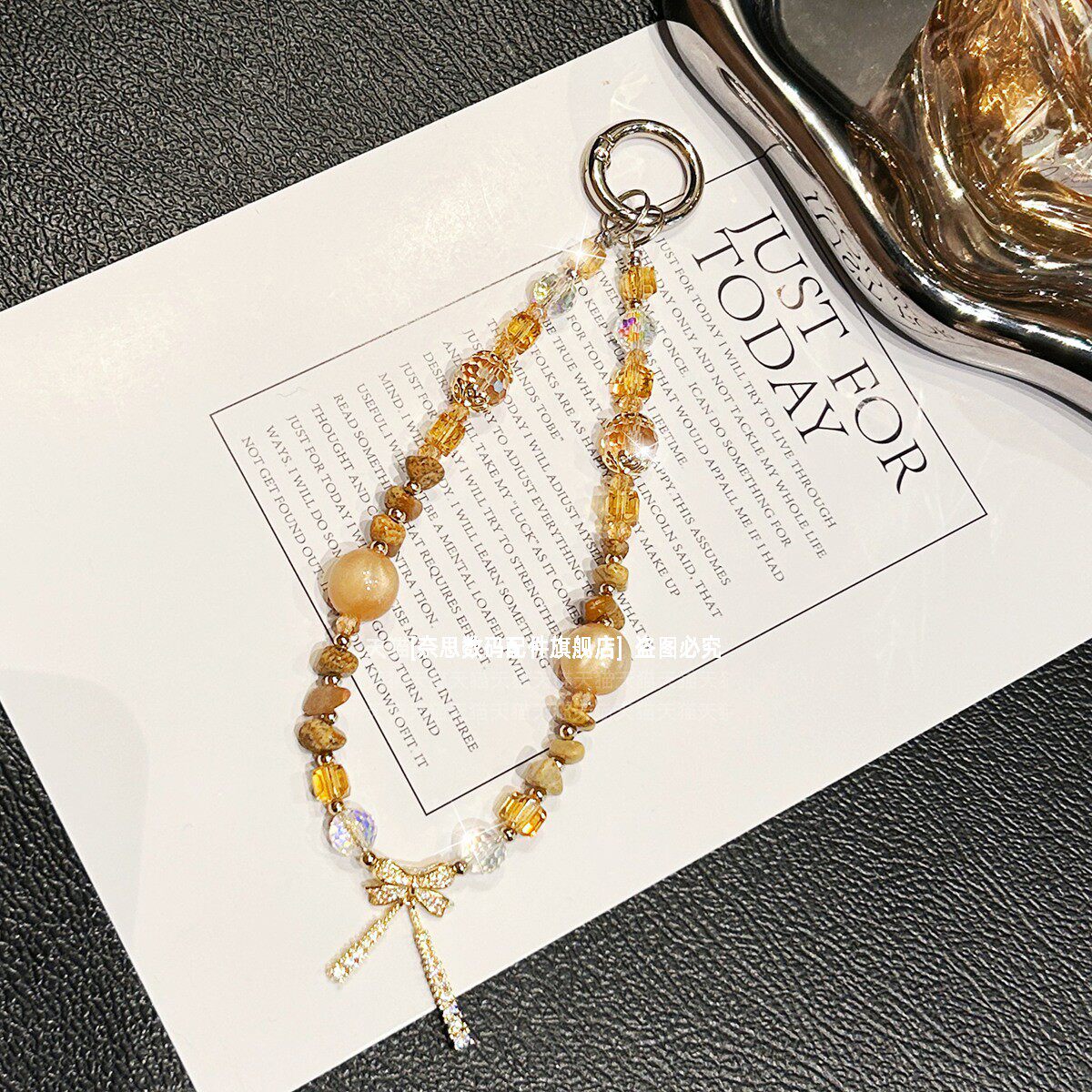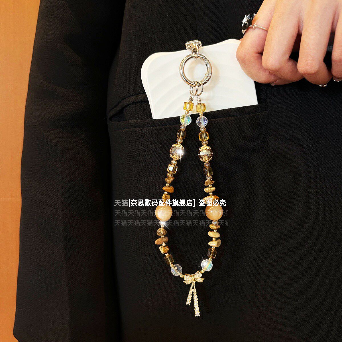 独特不规则水晶手机链挂饰独特好看吊坠挂链棕色串珠挂手腕链条轻奢手工挂件防摔短款腕带手链复古高级垫片壳