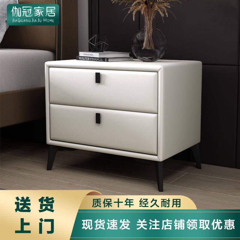 a床头柜轻奢皮质储物柜简易款现代简约小型卧室网红实木床边小柜