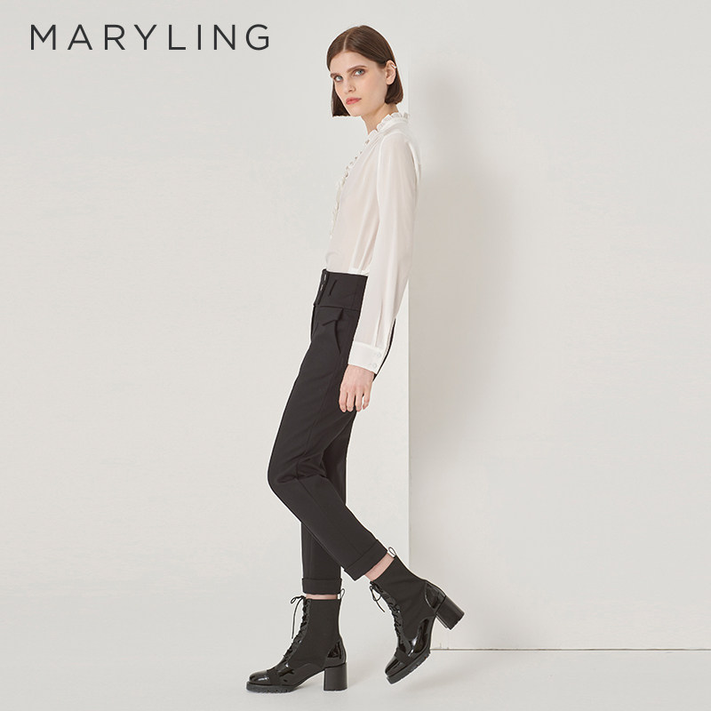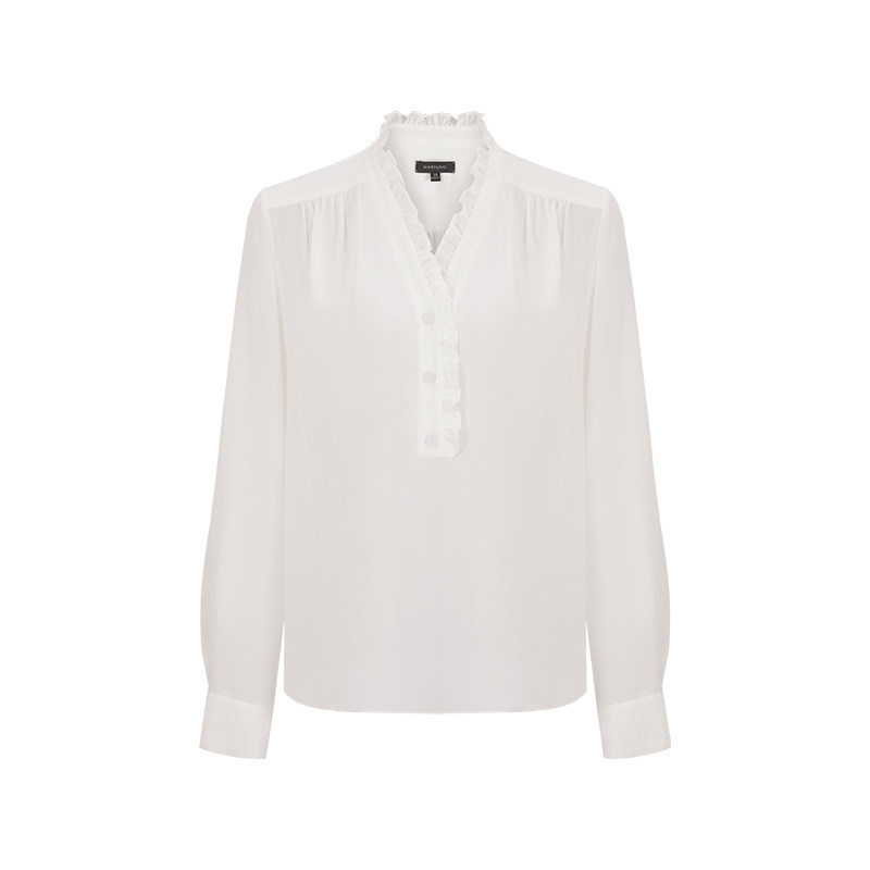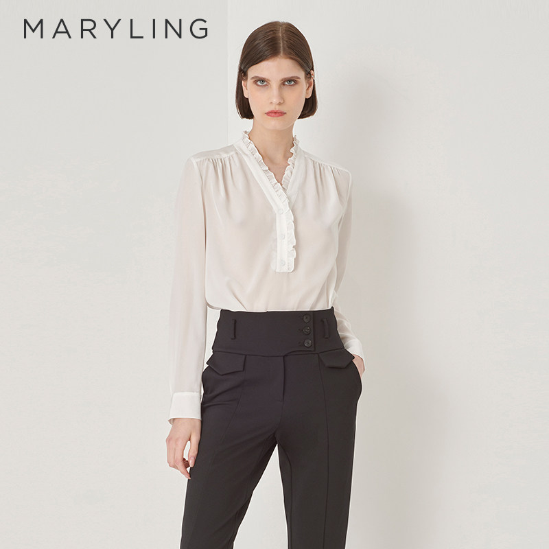 MARYLING玛俪琳秋季新品白色木耳边领真丝衬衫A1DGW20240