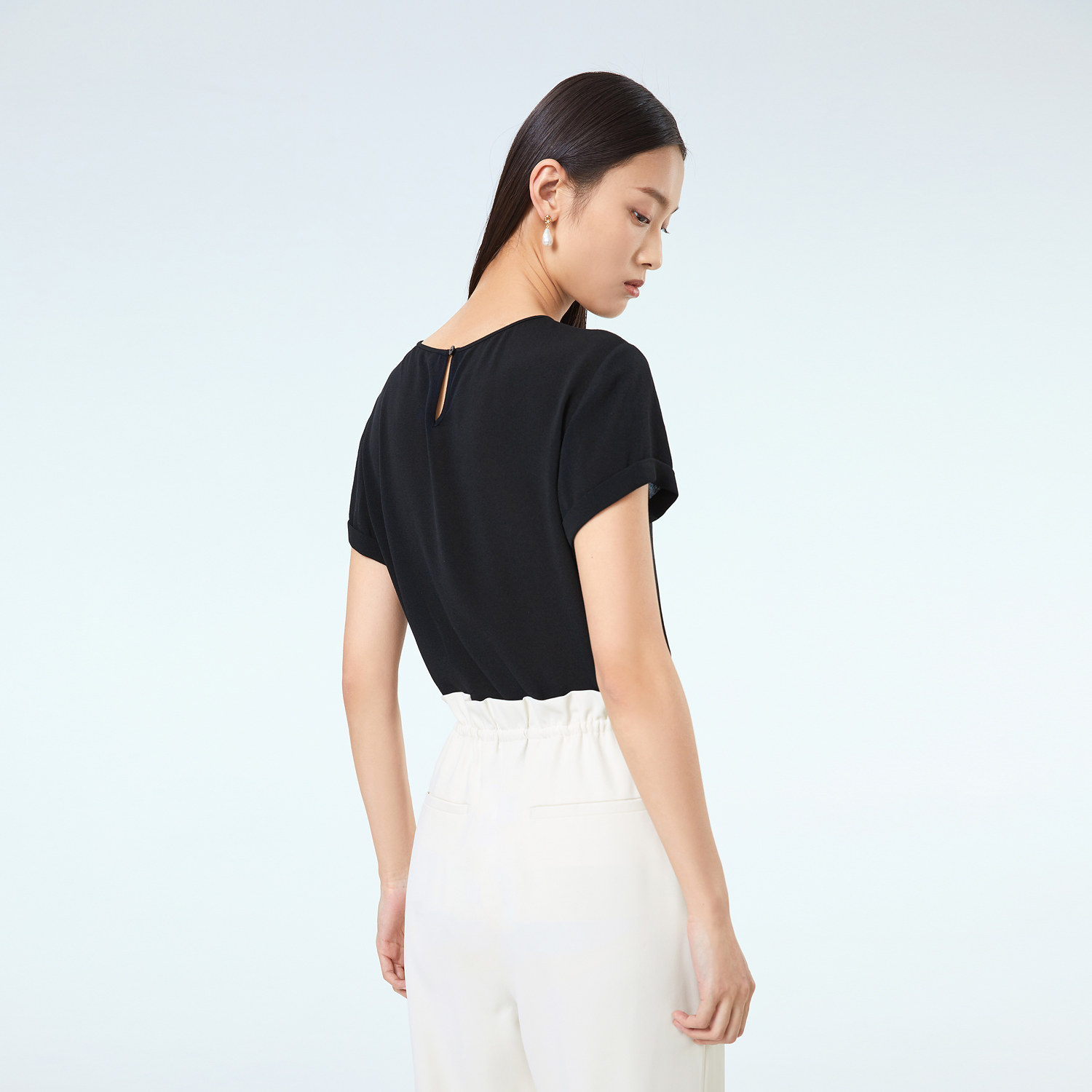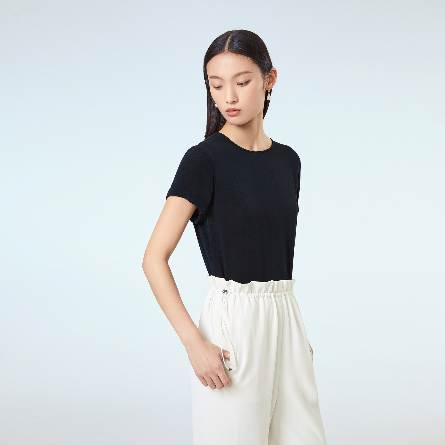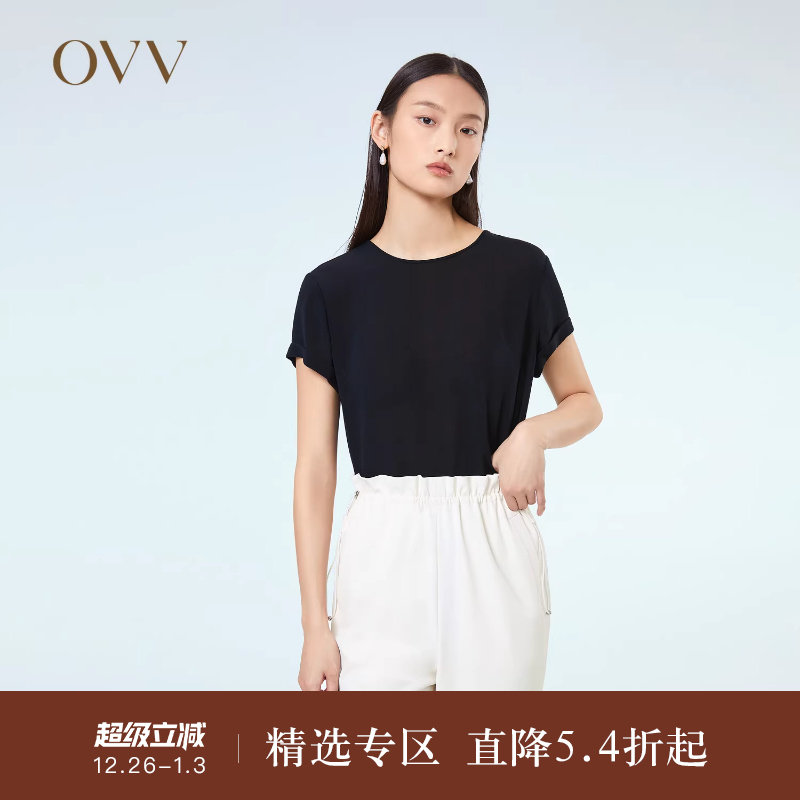 OVV春夏热卖女装22MM鬼绉真丝圆领短袖内搭上衣