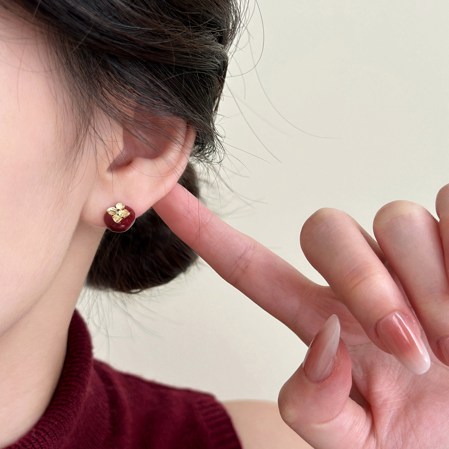 红色滴釉柿柿如意耳钉2025新款爆款高级感轻奢小众耳环秋冬耳饰女