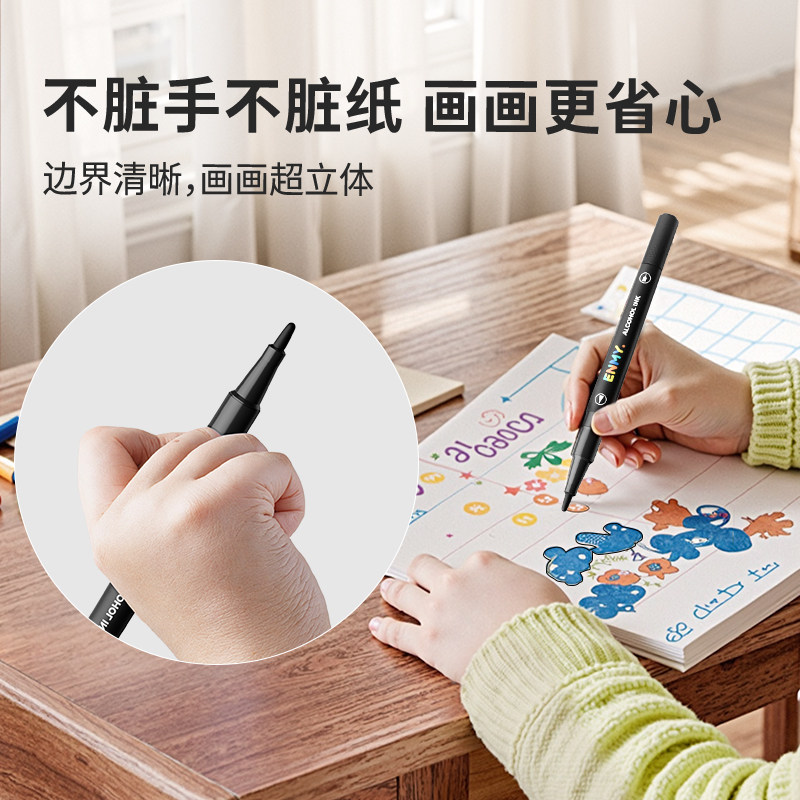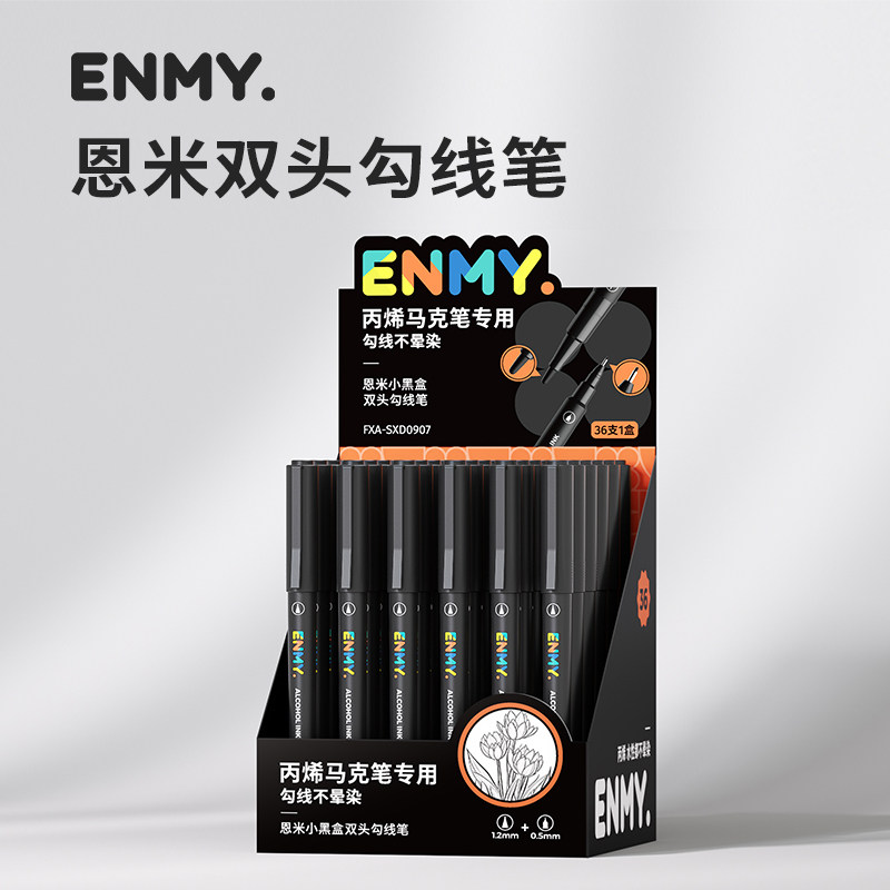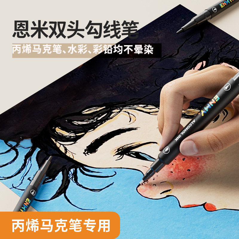 恩米双头勾线笔丙烯马克笔专用黑色水彩线条笔不卡痕儿童小学生