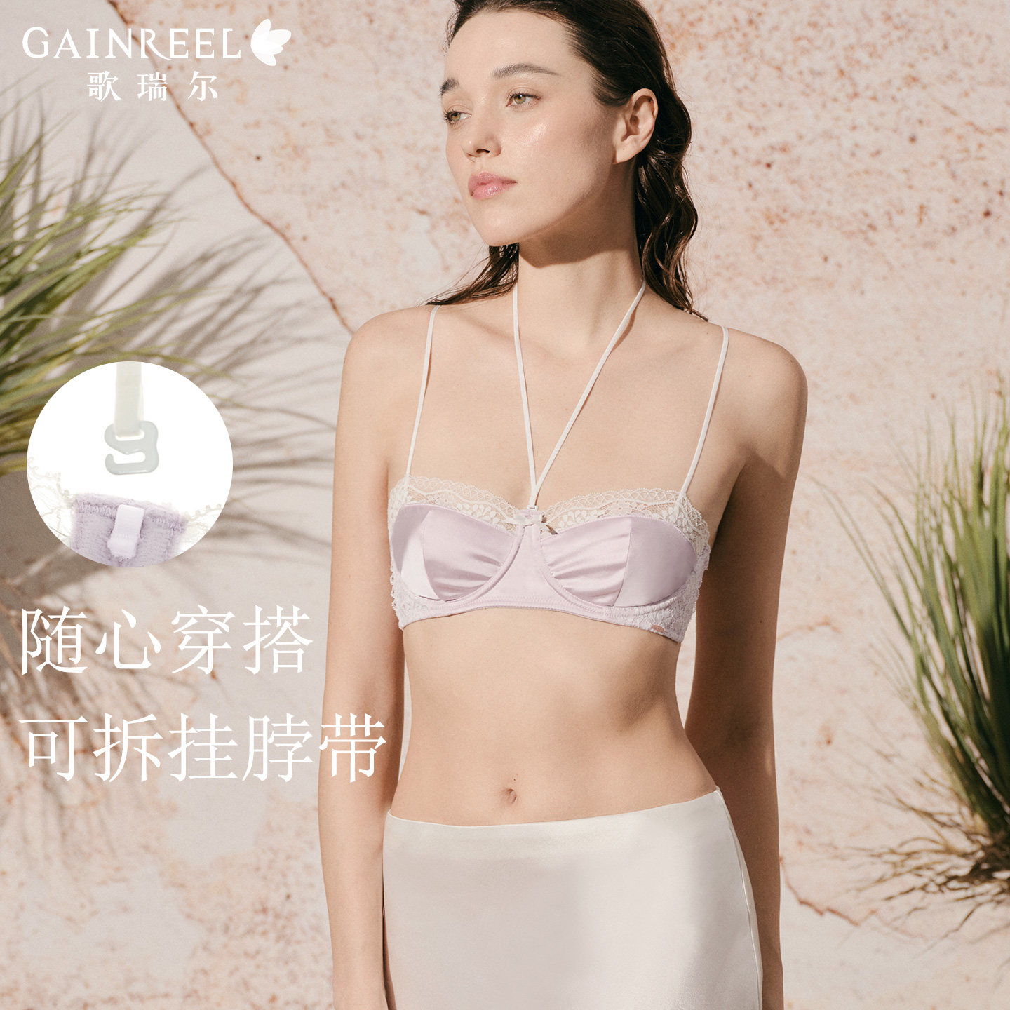 纯欲蕾丝 柔软缎面 可拆挂脖带 软钢圈承托