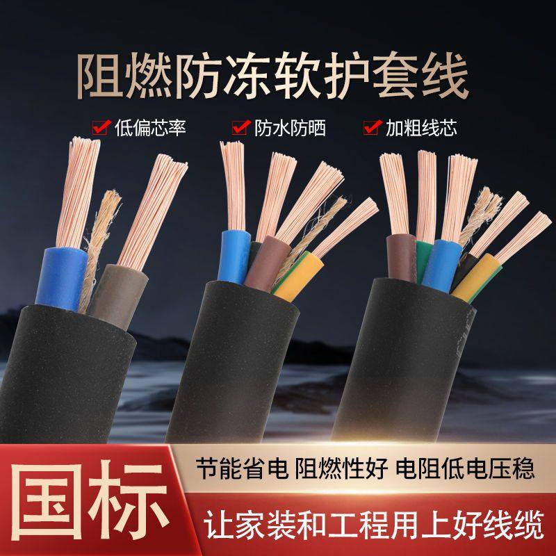 RVV国标纯铜芯电线户外护套线2芯3芯1.5 2.5 4 6平方家用软电缆线