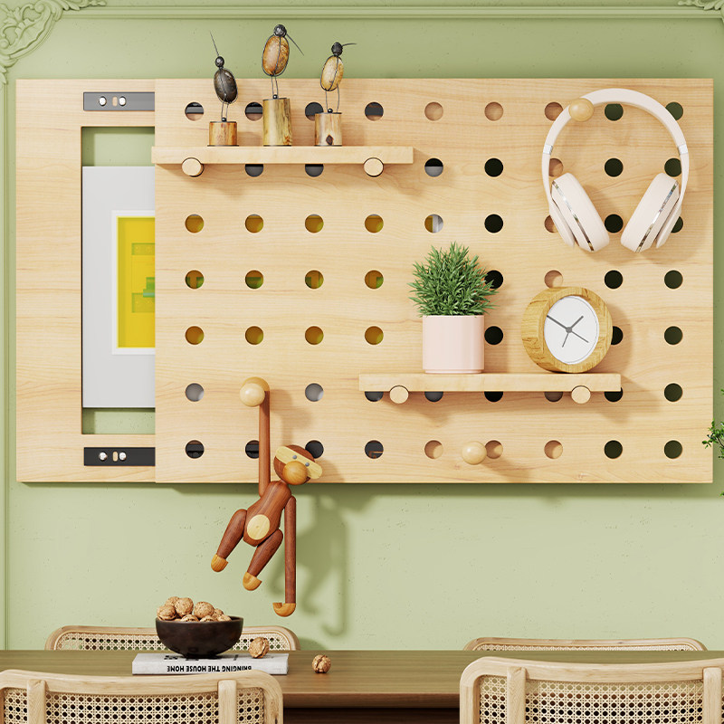 洞洞板电表箱装饰画强弱电箱遮挡贴墙开关挡板奶油推拉免打孔墙面