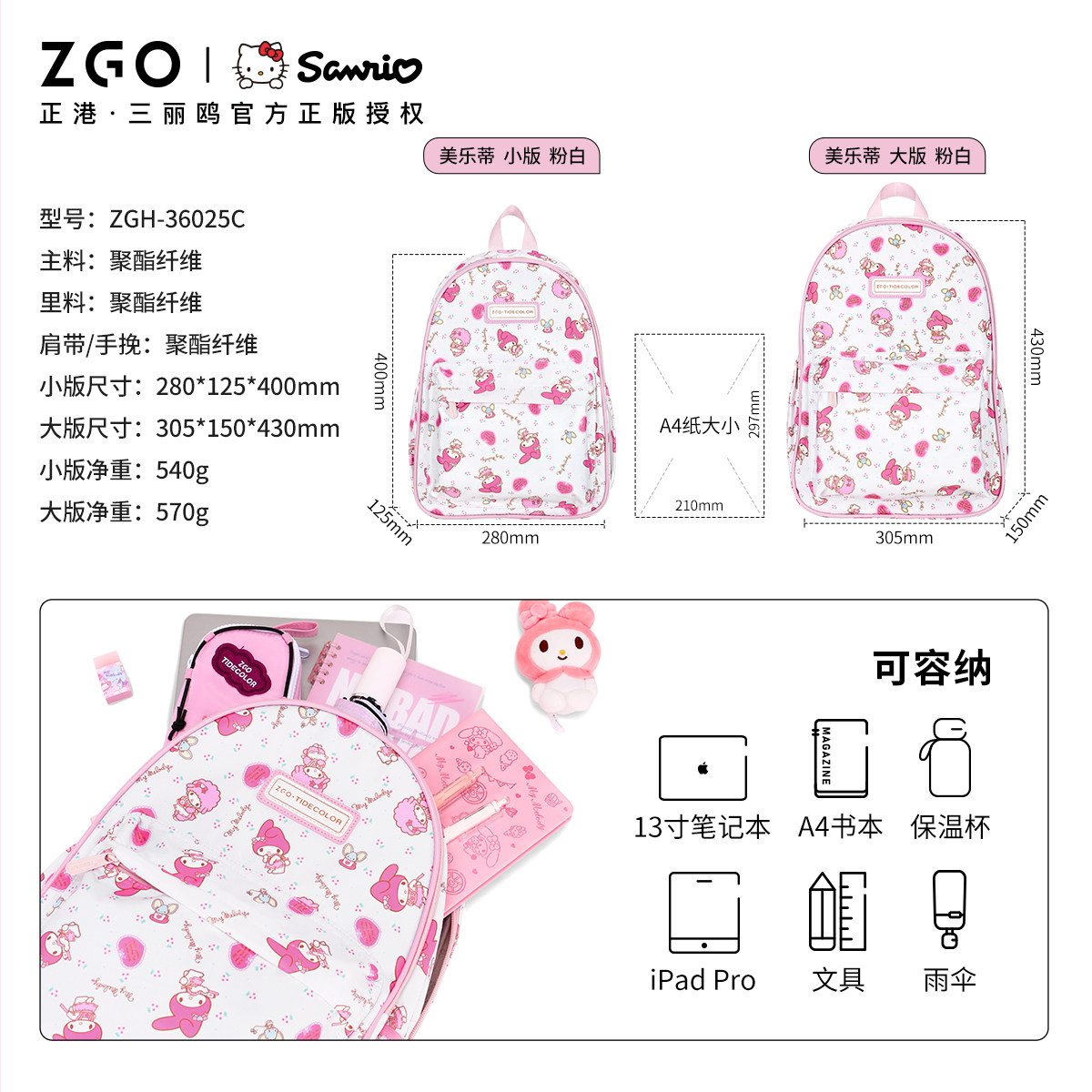 正港ZGOx美乐蒂书包减负护脊儿童小学生一三到六年级防水双肩背包