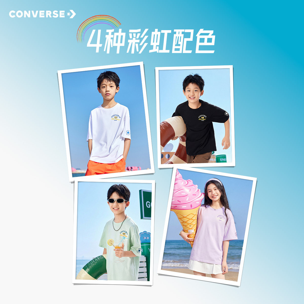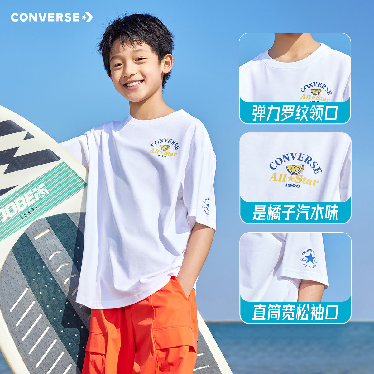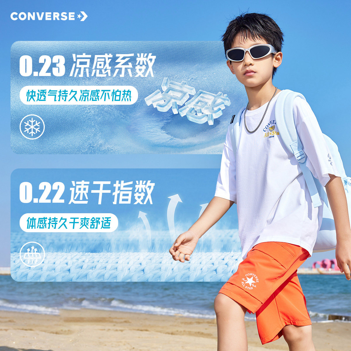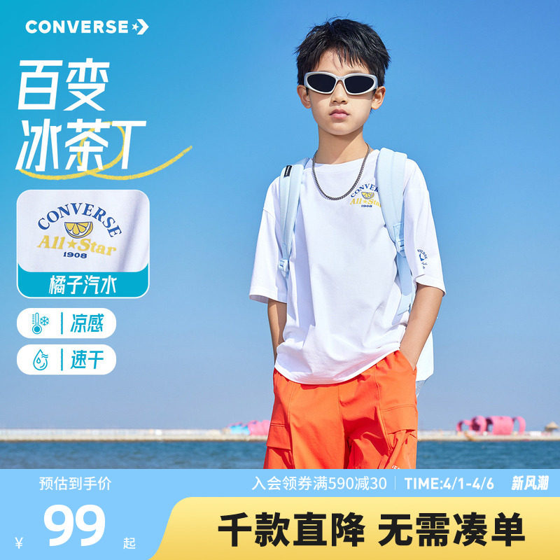匡威童装男童短袖T恤2026夏季新款凉感速干青少年休闲户外运动风