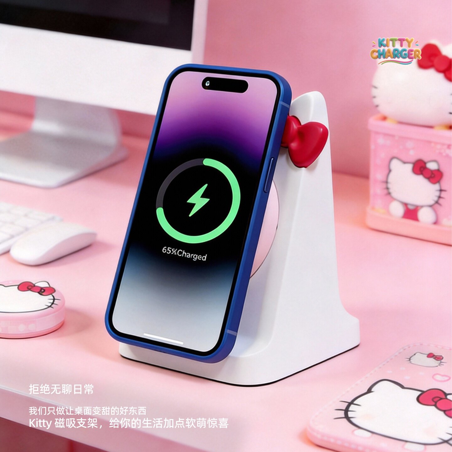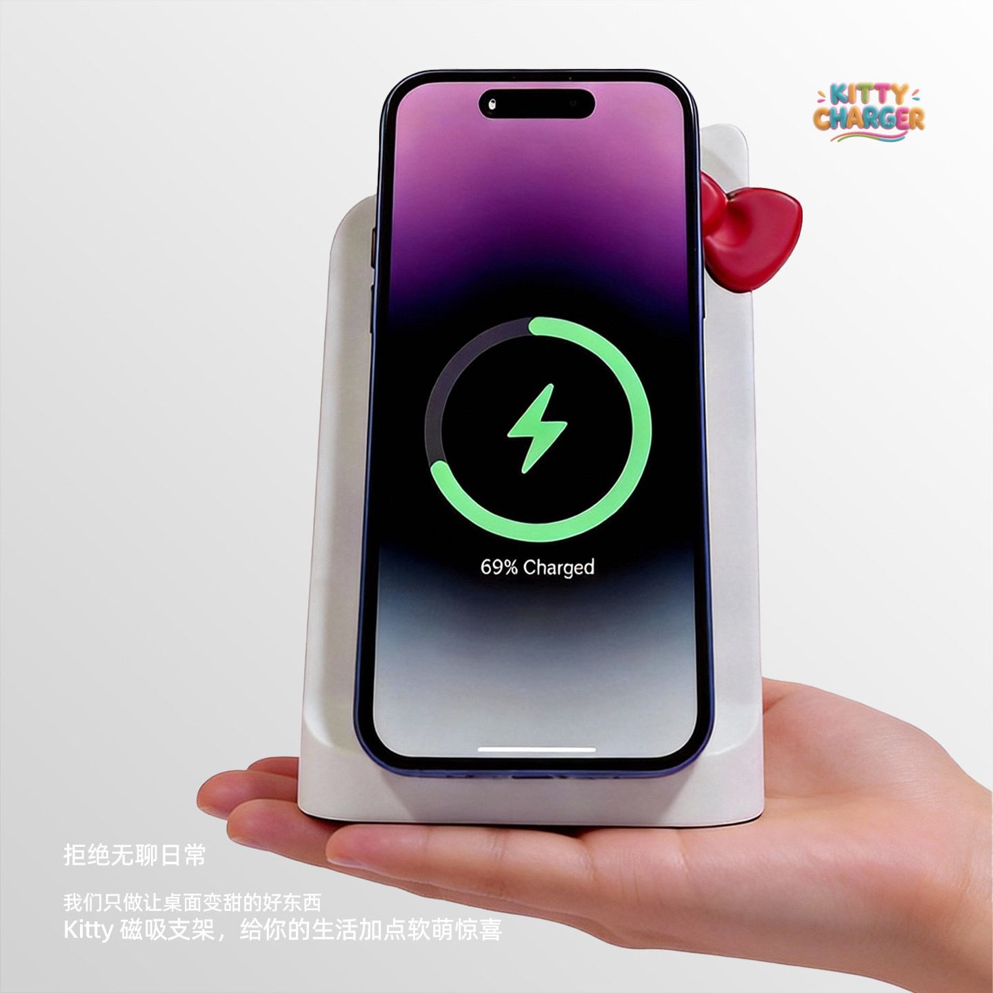 新款magsafe磁吸手机支架凯蒂猫创意无线充电底座适用于iphone