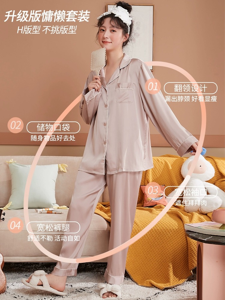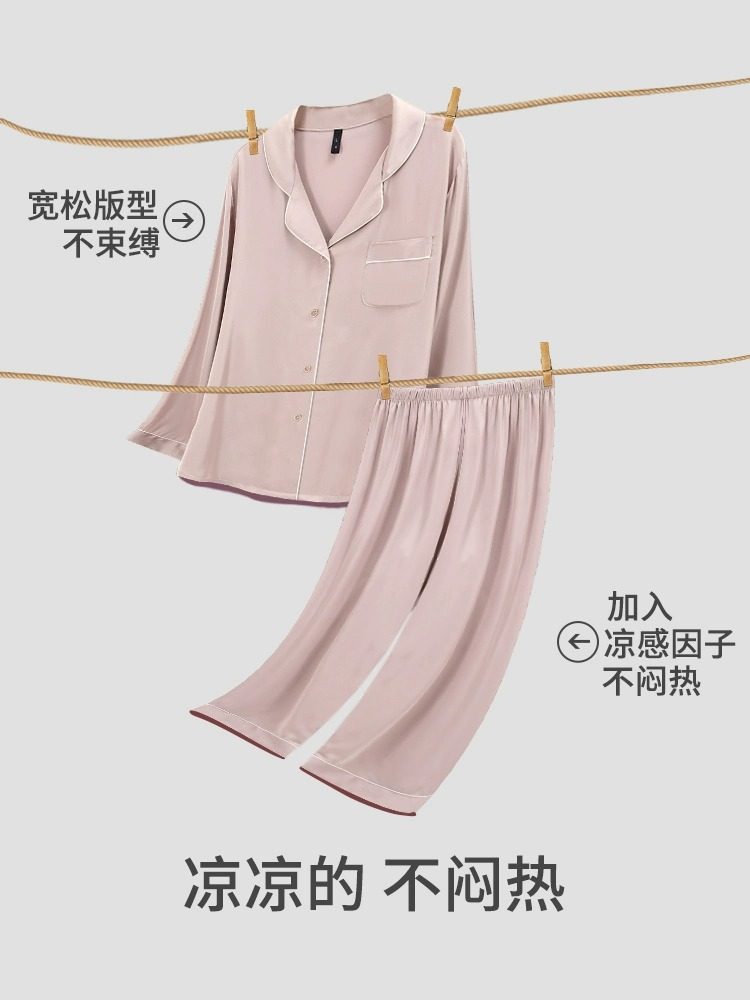 冰丝睡衣女春秋款长袖2025新款高级感女士秋季薄款丝绸家居服套装