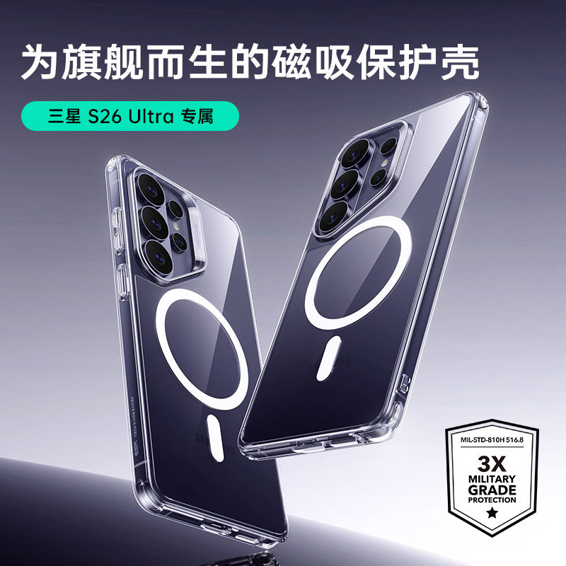 亿色适用于三星S26/25Ultra手机壳 plus磁吸保护壳 S26简约防摔 galaxy S26 Ultra 超强1500g磁吸 透明轻薄