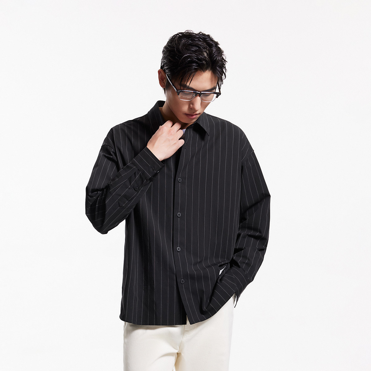 王安宇同款森马长袖衬衫男纯棉2025春秋新款通勤休闲上衣商务衬衣