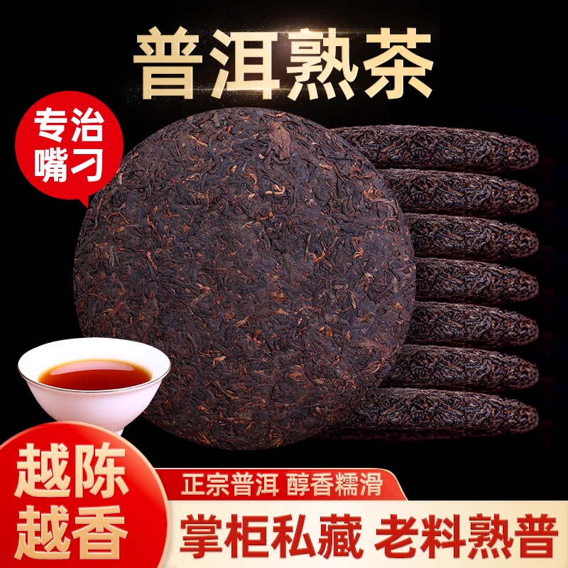 普洱茶熟茶饼陈年古树普洱熟茶云南七子饼熟普黑茶叶自己喝口粮茶