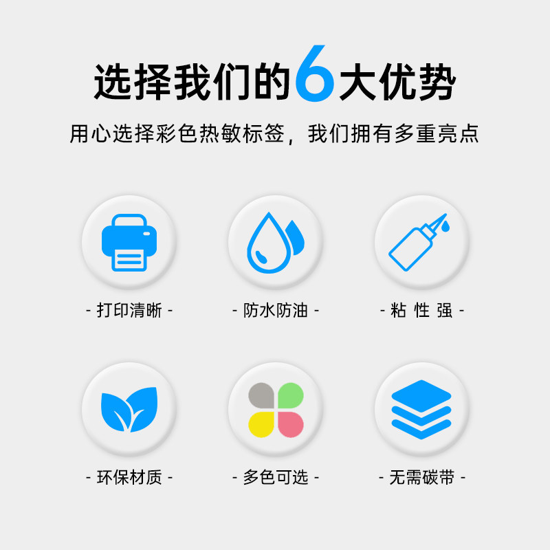 彩色三防热敏纸20*10mm双排横版红黄蓝绿橙紫粉棕灰牛皮纸白色不干胶标签条形码包装纸箱打印贴纸2*1cm可定制