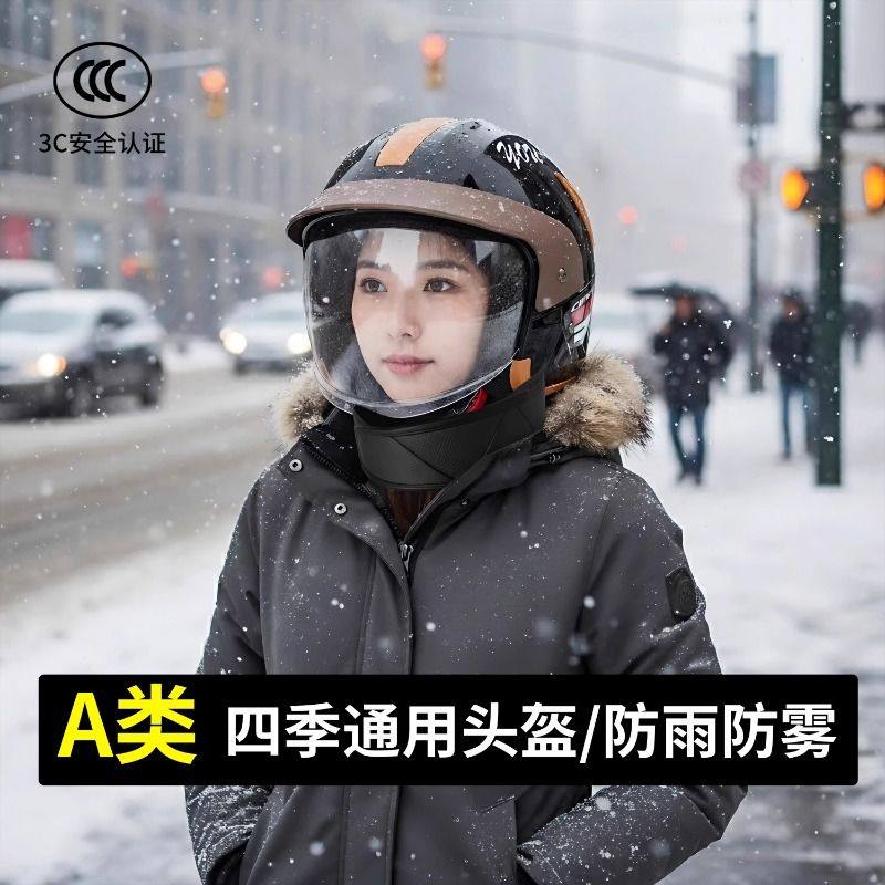 3C认证电动摩托车头盔男女四季通用盔秋冬保暖防雨防雾全盔安全帽