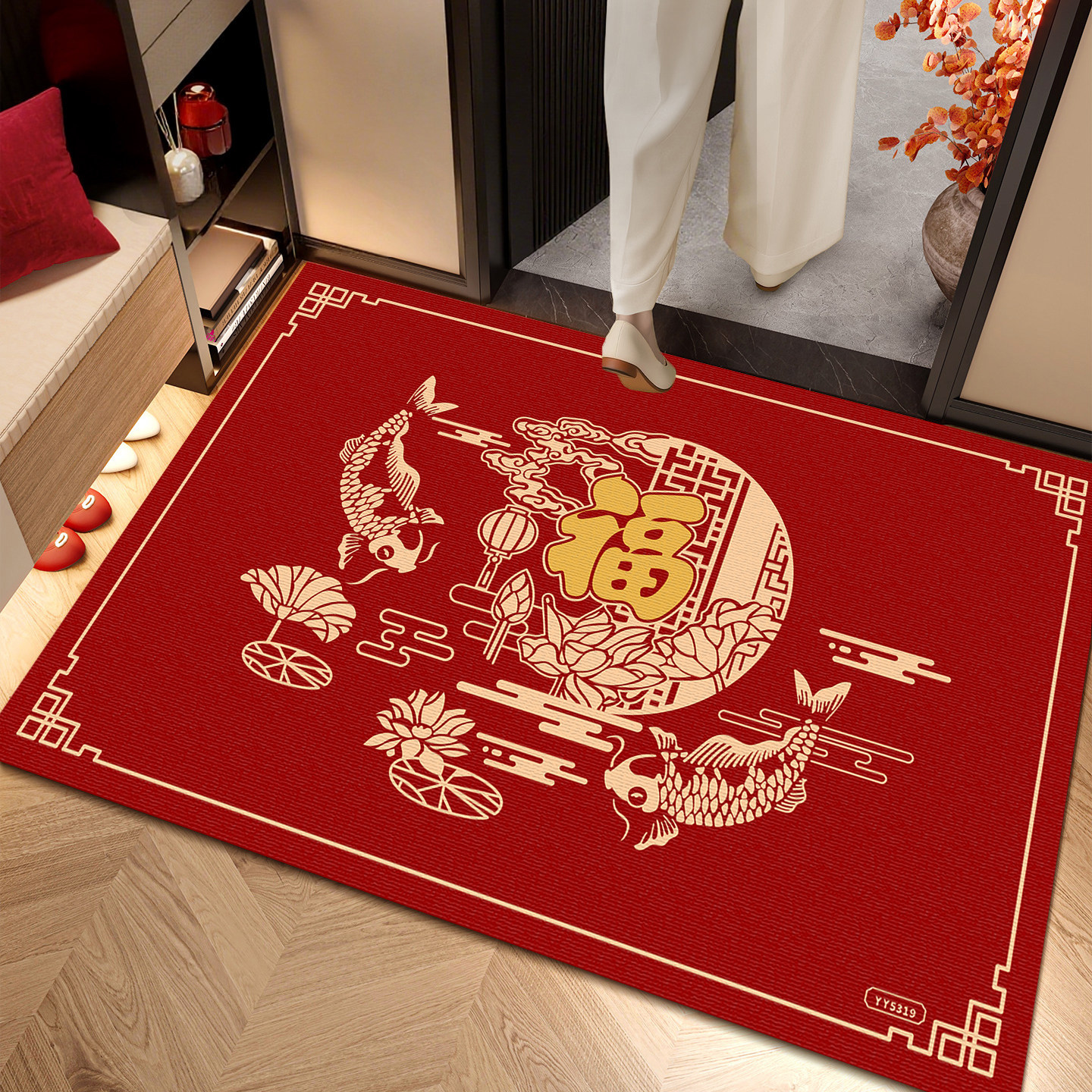 红色马年地垫入户门垫喜庆中式进门高级感大门口脚垫别墅新款垫子