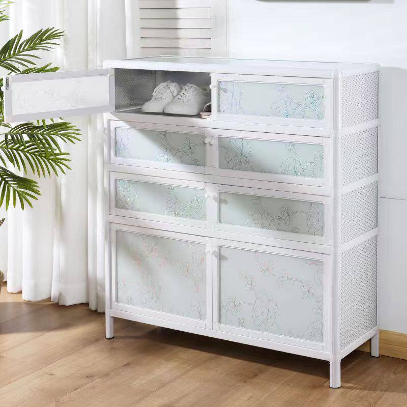 加厚钢制鞋柜门口家用一体靠墙多层储物柜入户落地大容量防尘鞋架