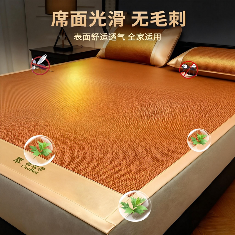 艾草冰丝凉席夏天2026新款宿舍单双人竹席草席藤席夏季空调软席子