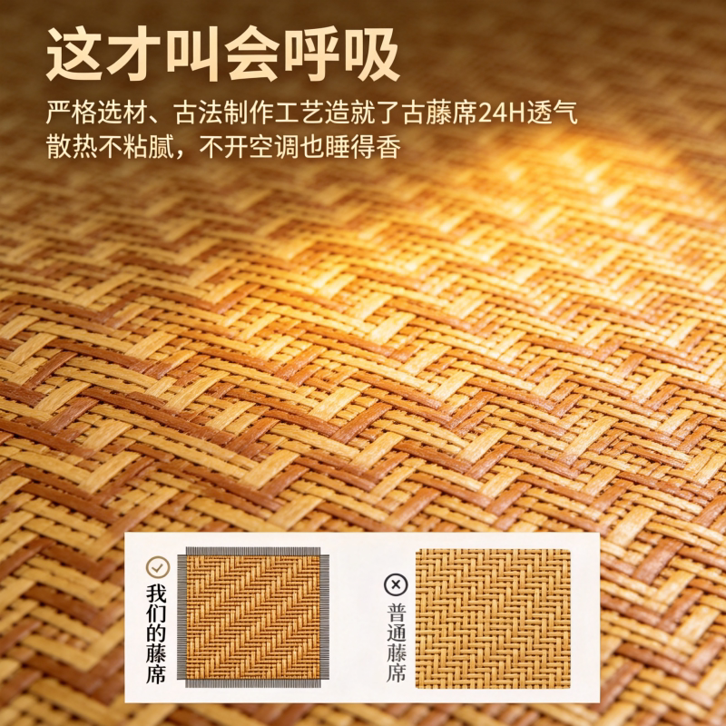 藤席冰丝凉席夏季裸睡双面正反两用可折叠家用双人1.5米1.8草席子