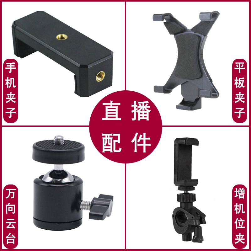 手机夹直播支架三脚架平板夹子夹头零件配件多功能旋转万向云台固定夹三多机位双机位增机位话筒设备声卡托盘