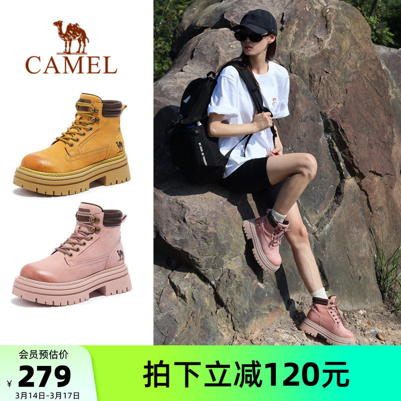 骆驼马丁靴女鞋2026春季新款户外英伦大黄靴女款厚底短靴工装靴子