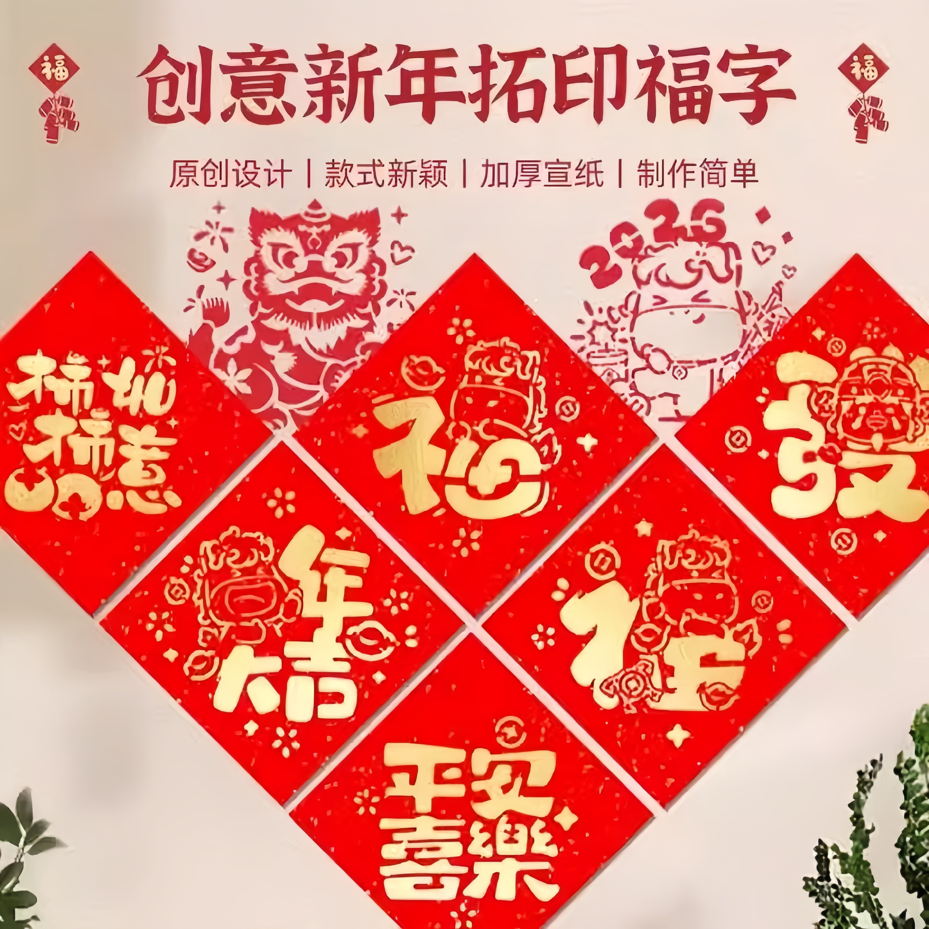 2026新年马年创意福字按压印章贴纸DIY拓印非遗活字雕版年画印刷工具包体验幼儿园元旦春节国风福字材料包