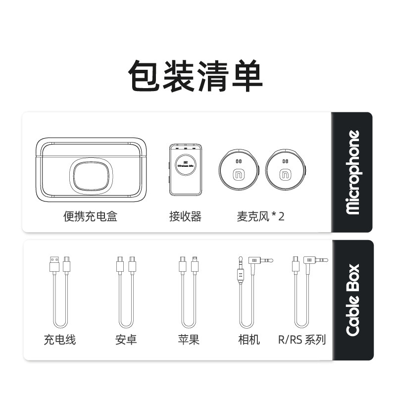 无线麦克风适用Insta360 One RS/R无线麦克风全指向型外置麦克风