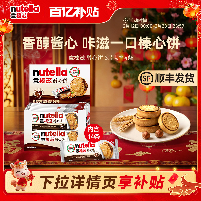 意榛滋nutella费列罗巧克力醇心饼榛果可可调味酱饼干41.4g*14