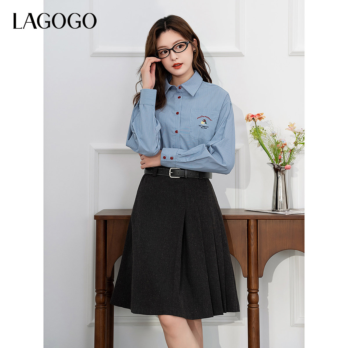 LAGOGO通勤灰色百褶裙半身裙女拉谷谷2026春新款学院风短款裙子