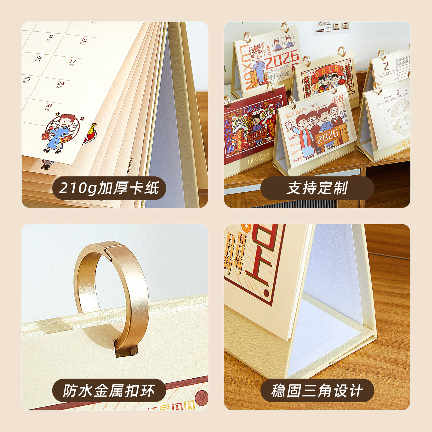 2026年台历礼盒装创意简约办公月历定制笔筒木质桌面摆件马年打卡日历计划本记事历新年礼品物流保险银行台历