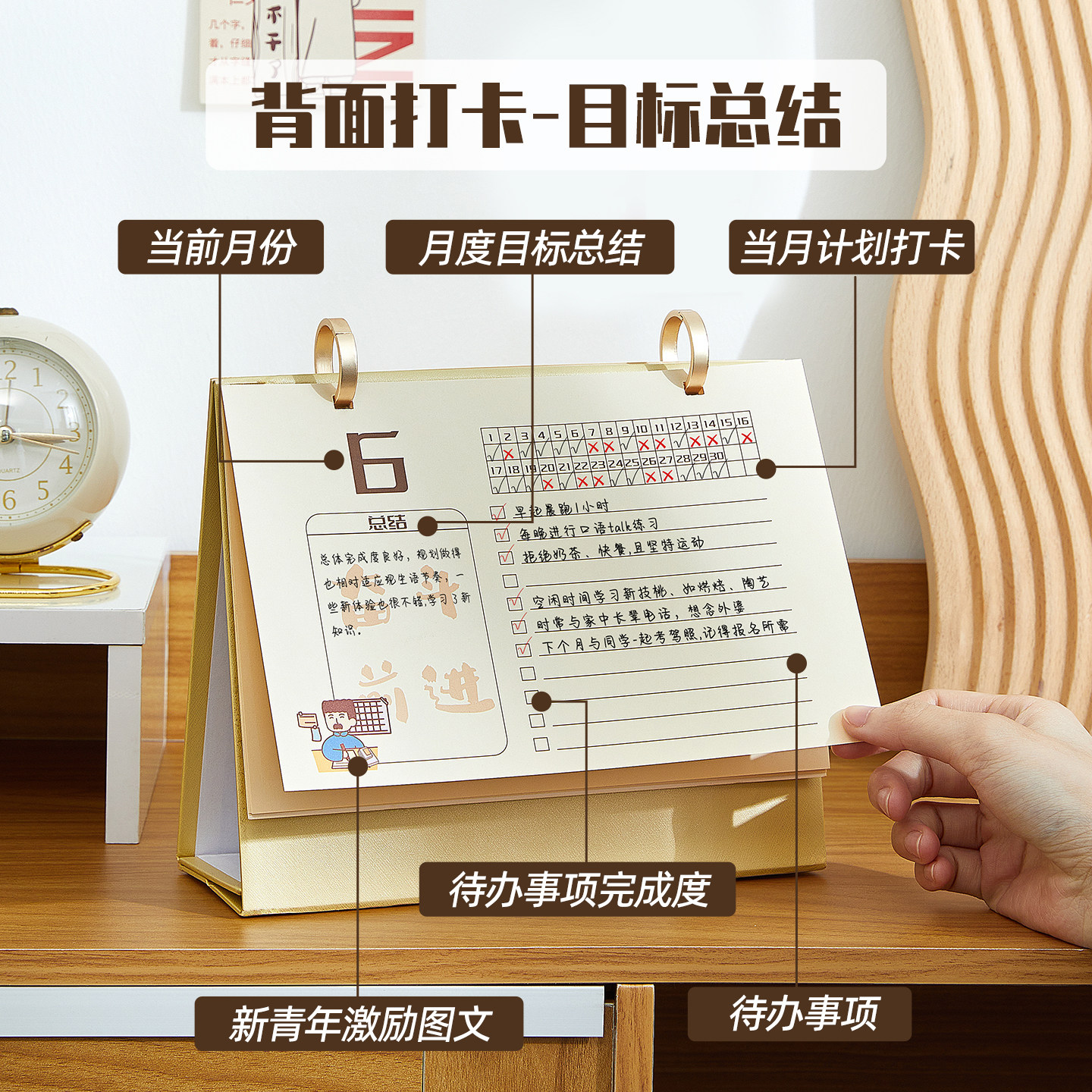 台历2026年烫金新款日历桌面摆件创意高颜值月历万年历高考倒计时打卡记事本大格子计划表商务办公考研备忘录