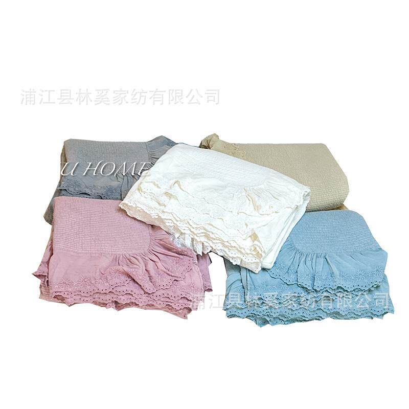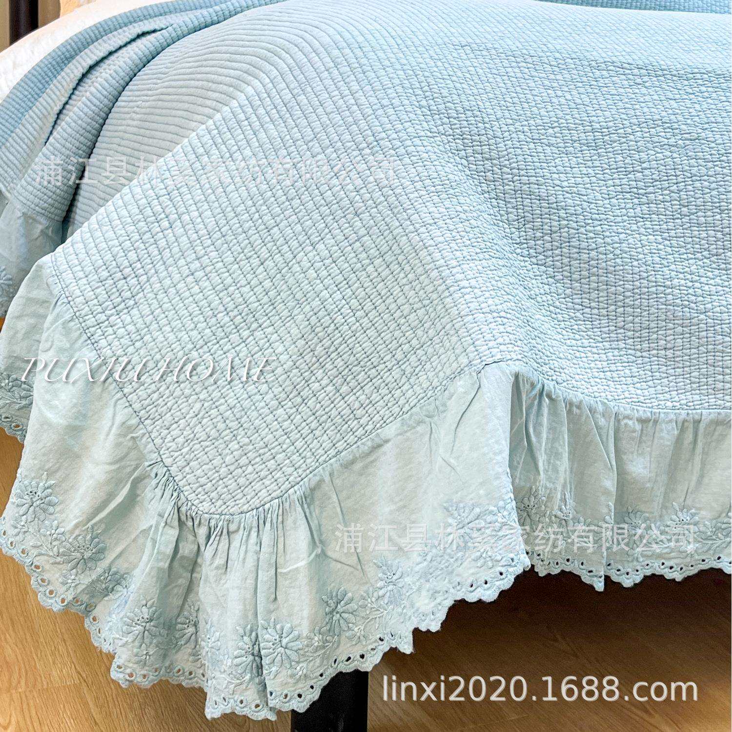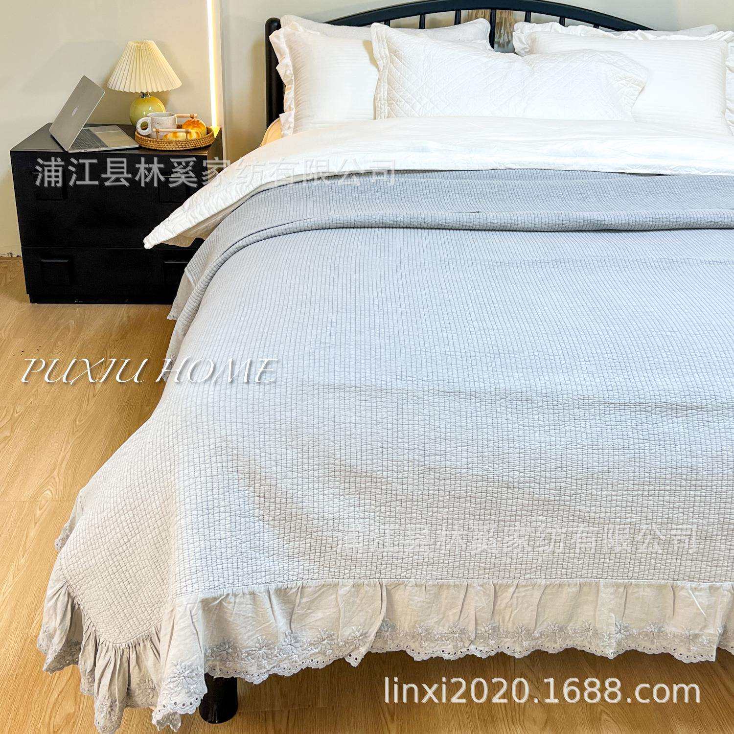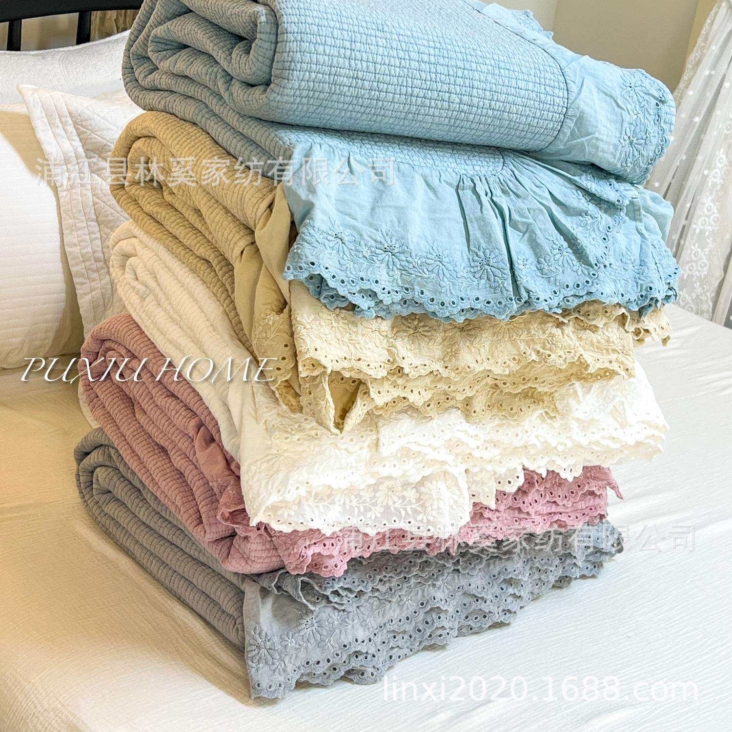 韩式纯棉花边绗缝酵素洗夏被夹棉可机洗全棉床盖秋冬床褥纯色