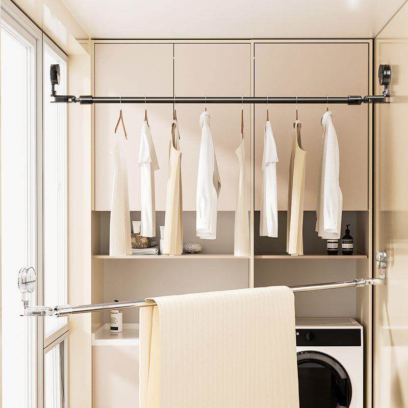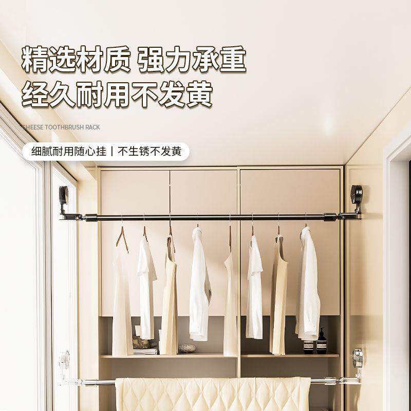 吸盘伸缩晾衣杆免打孔阳台室内多功能晾衣神器浴帘杆窗帘杆