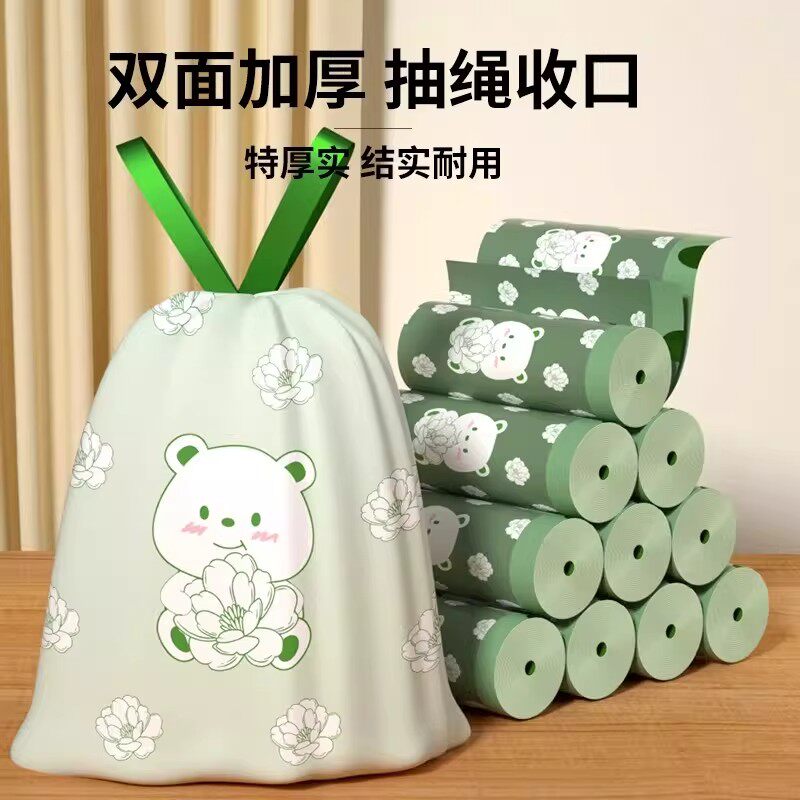 小熊印花垃圾袋家用加厚手提式大号免撕抽绳塑料袋厨房专用