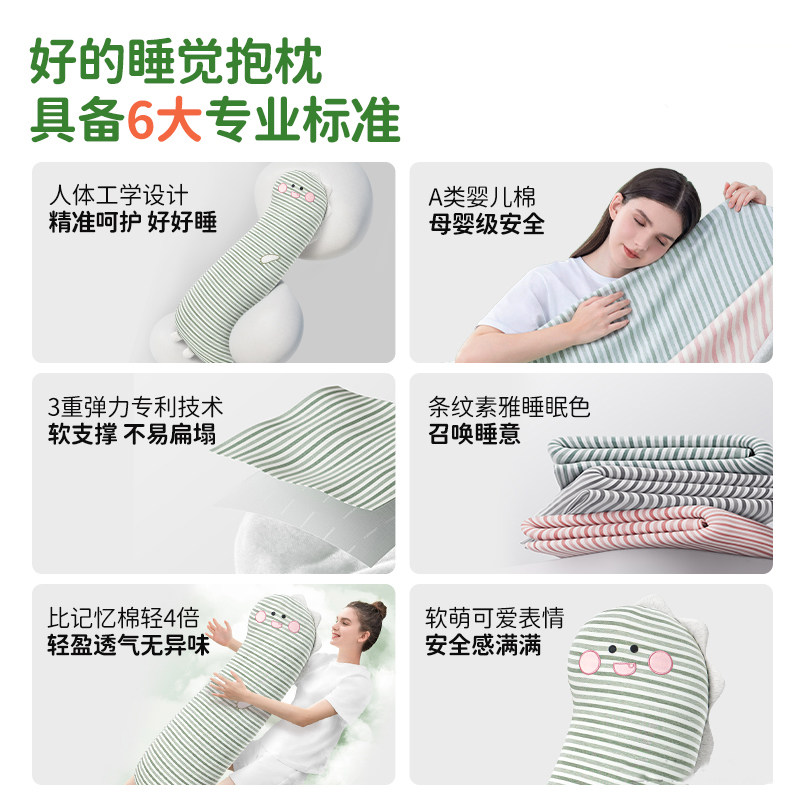 恐龙抱枕女生睡觉专用侧睡夹腿靠枕床上成人冰丝凉感长条枕头孕妇