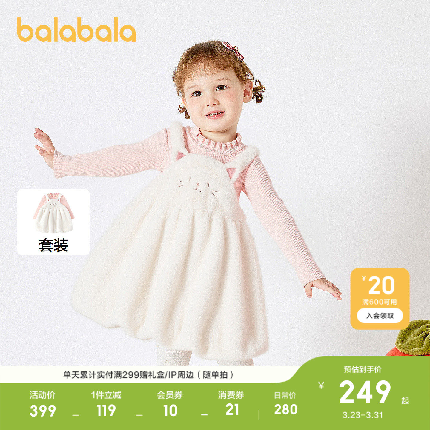 仿兔毛背带裙两件套,萌趣可爱动物造型