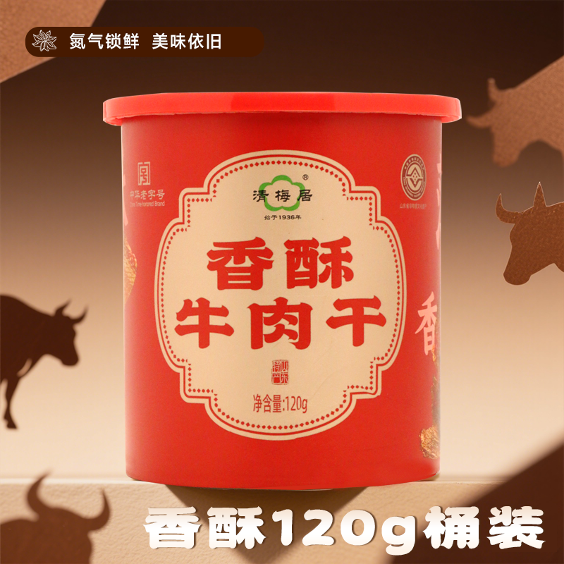 清梅居香酥牛肉干120g氮气桶装咸甜酥脆牛肉片博山特产休闲零食