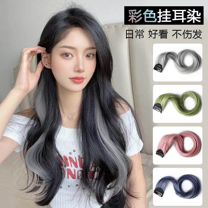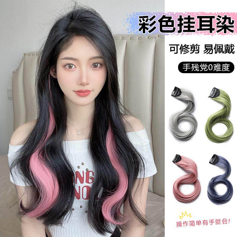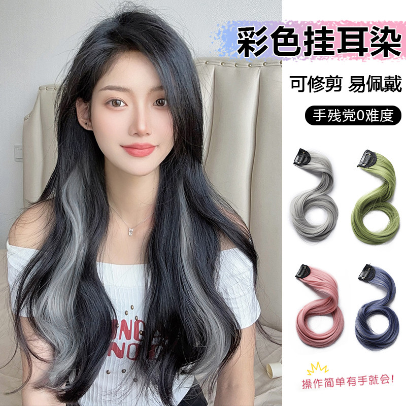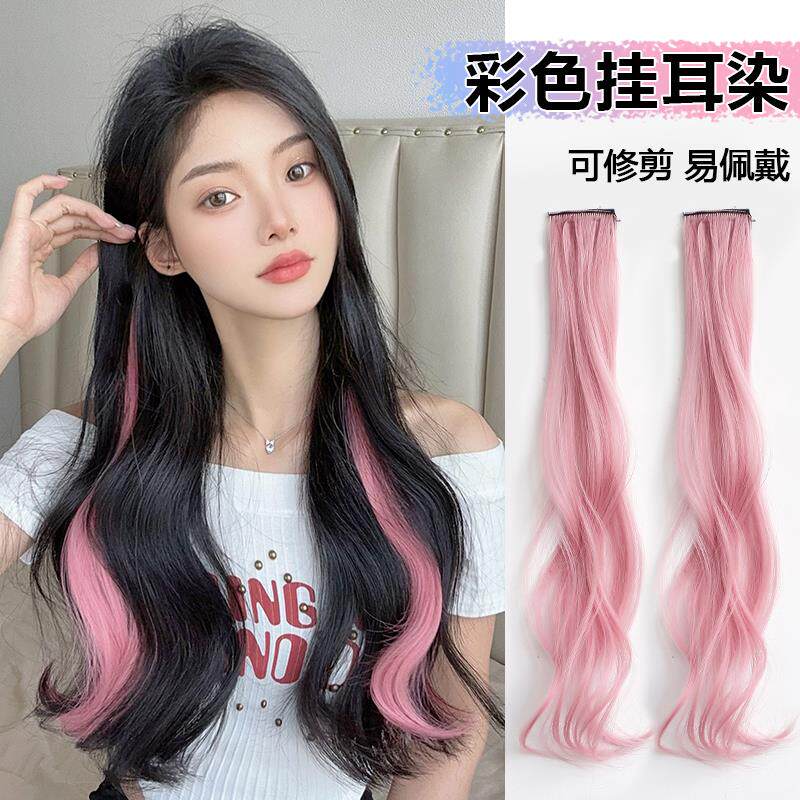 卷发彩色假发片挂耳染无痕一片式挑染女长发仿真发隐形接发条