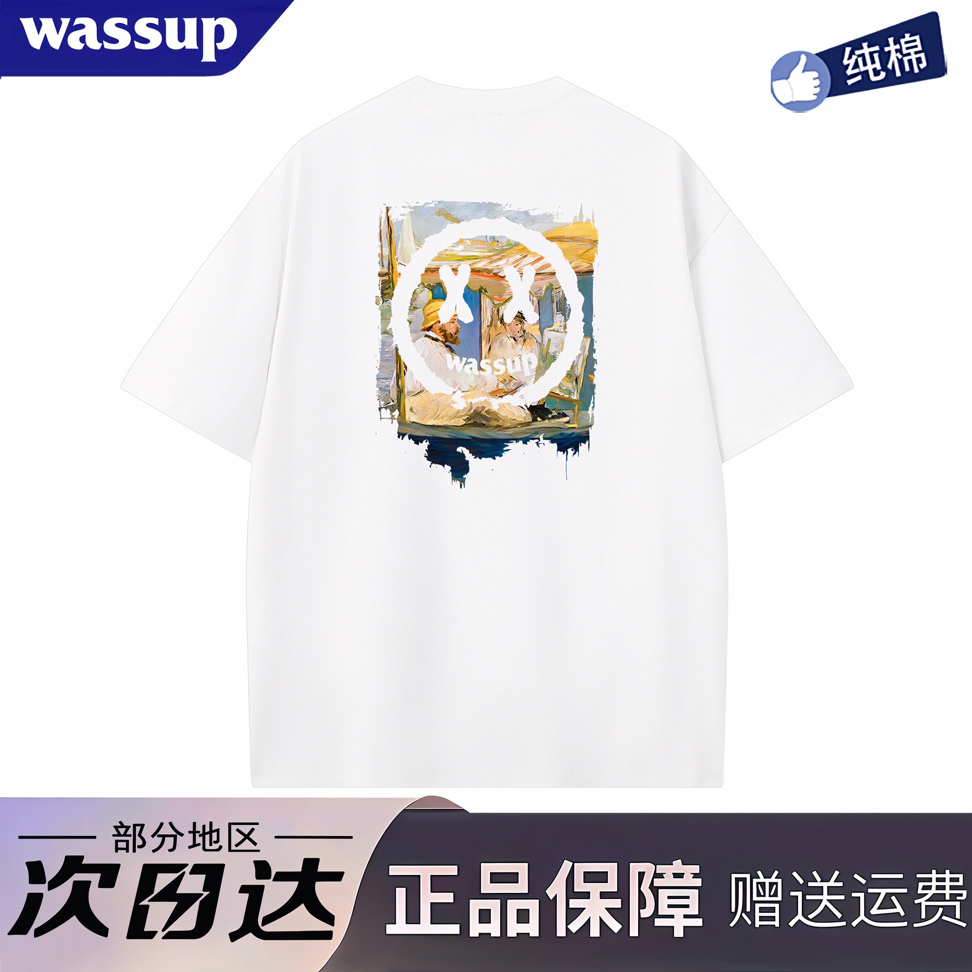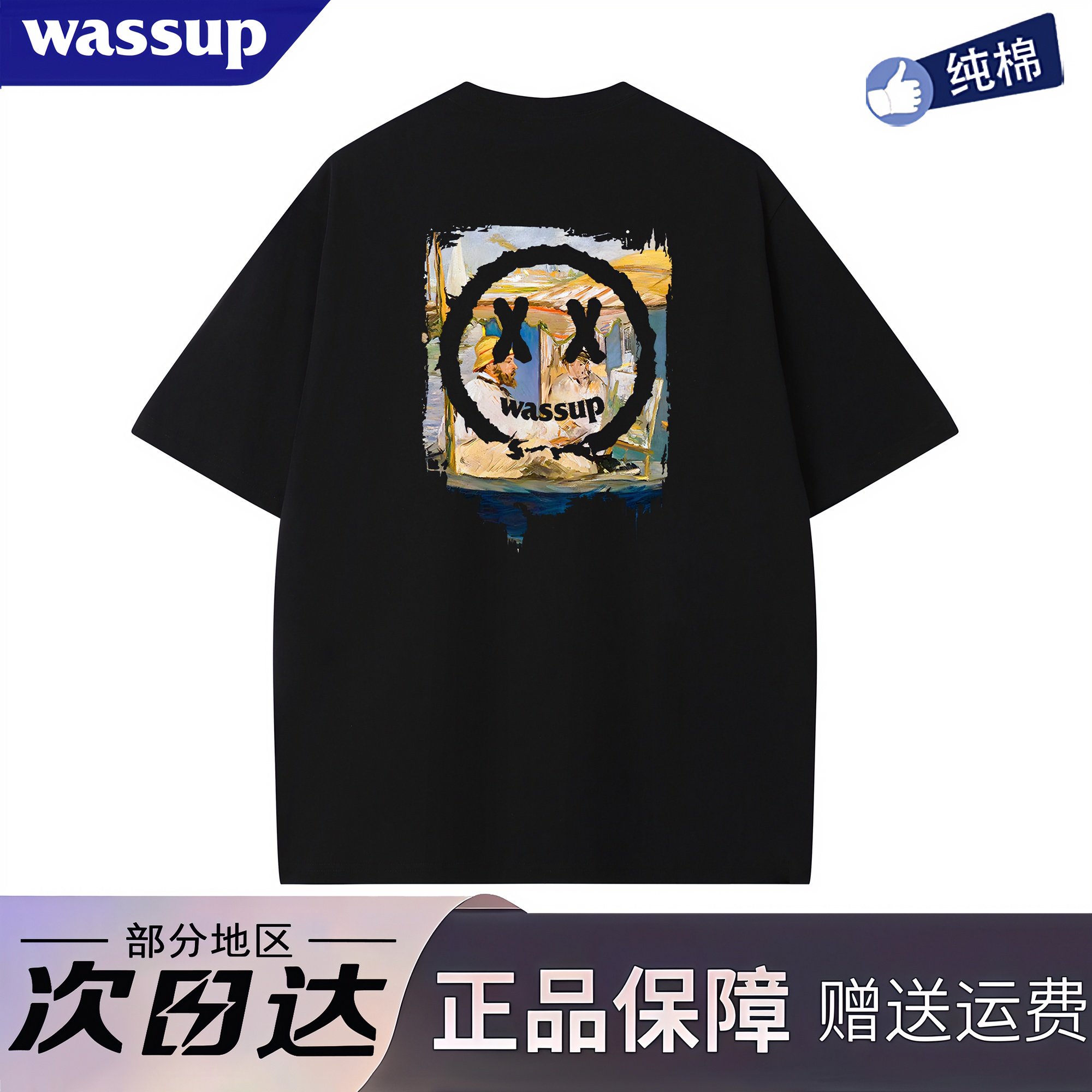 WASSUP旗舰店小恶魔笑脸短袖夏季美式潮牌重磅纯棉vintage半袖T恤