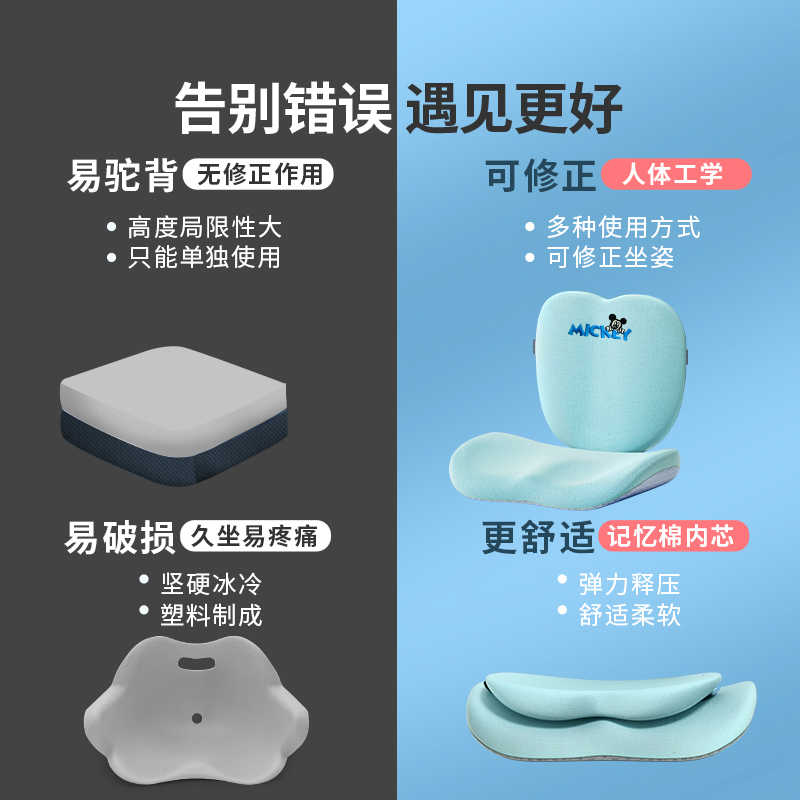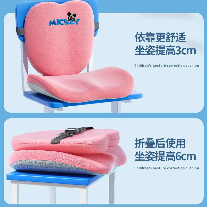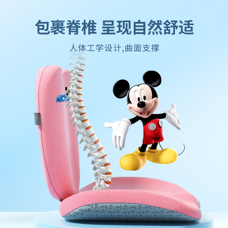 迪士尼儿童护腰增高坐垫靠垫一体学生学习折叠椅子座垫靠背屁股垫