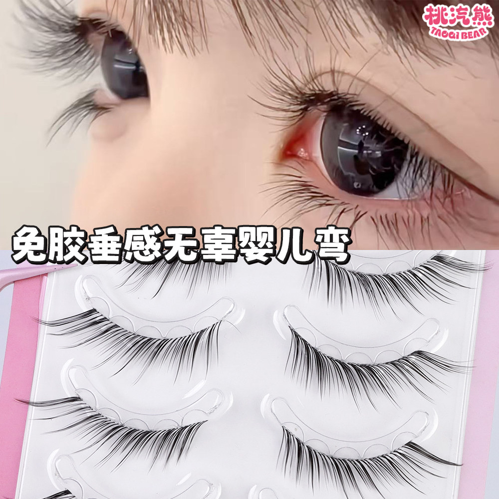 我见犹怜免胶狐系婴儿弯假睫毛一片式仿真眼梗自粘透明梗浓密卷翘