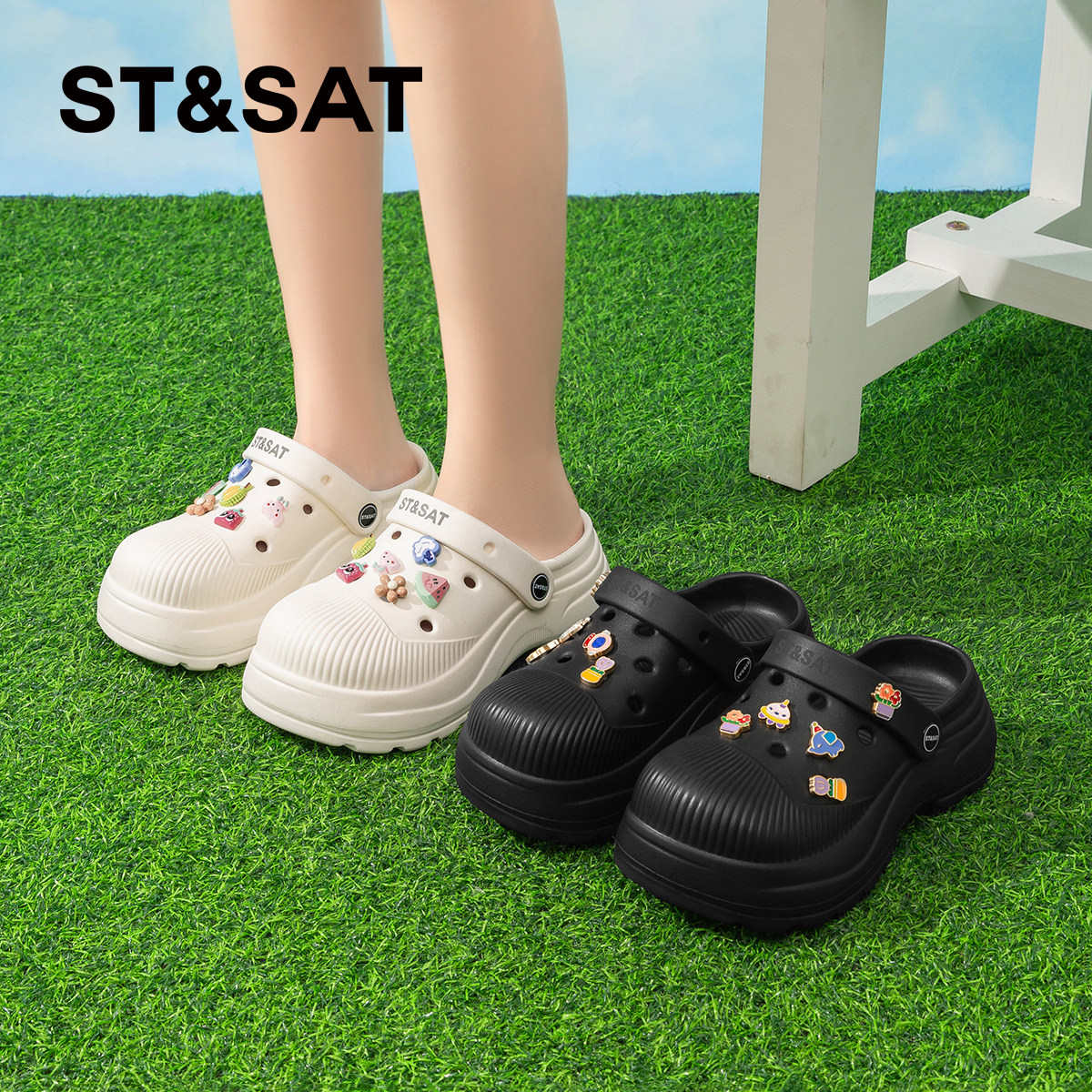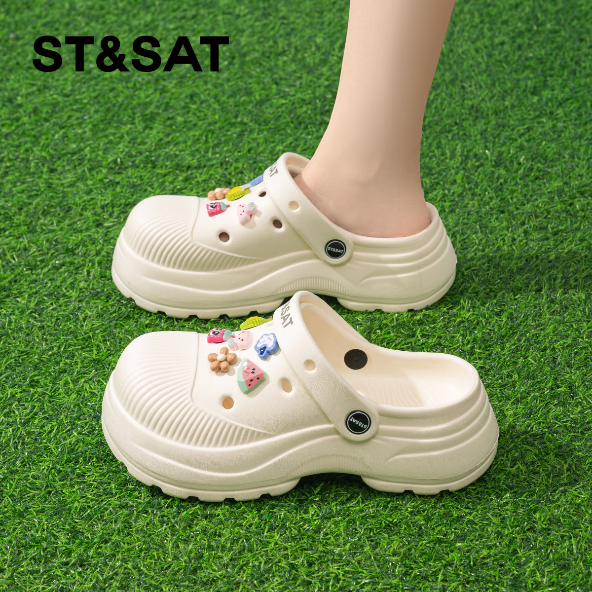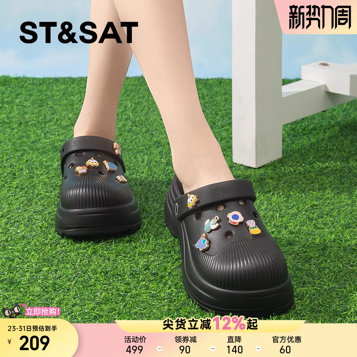 星期六超火厚底可爱洞洞鞋沙滩鞋女2026夏季新款两穿休闲凉鞋拖鞋